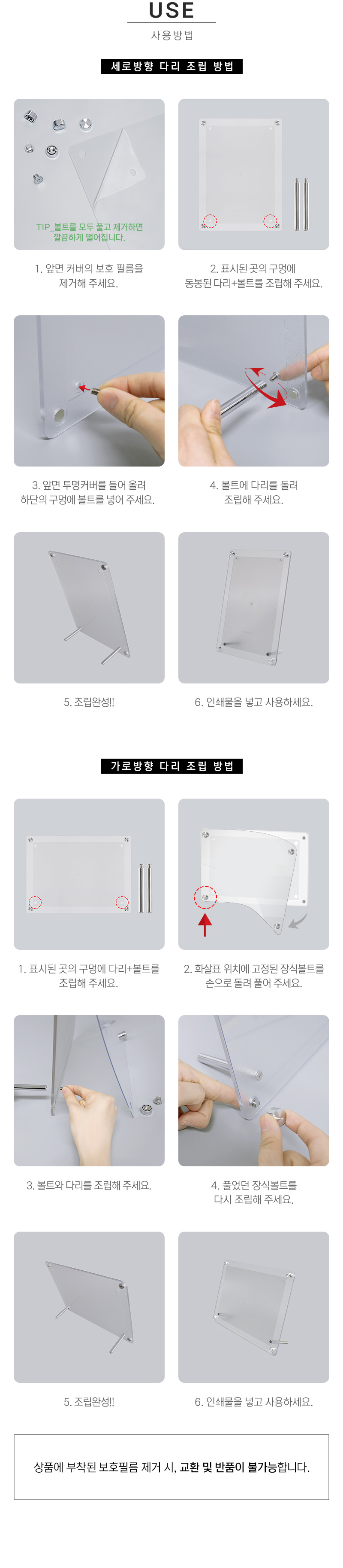 · 사용방법: 앞면 커버에 보호 필름 제거 후 동봉된 다리를 원하는