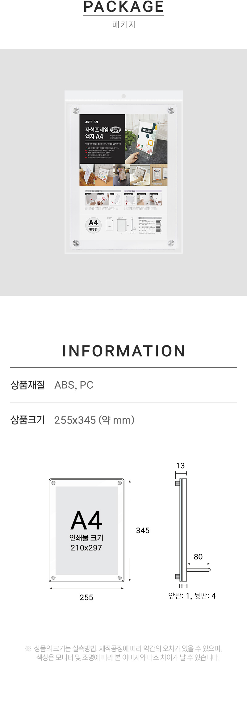 • 자석프레임액자A4(반투명)