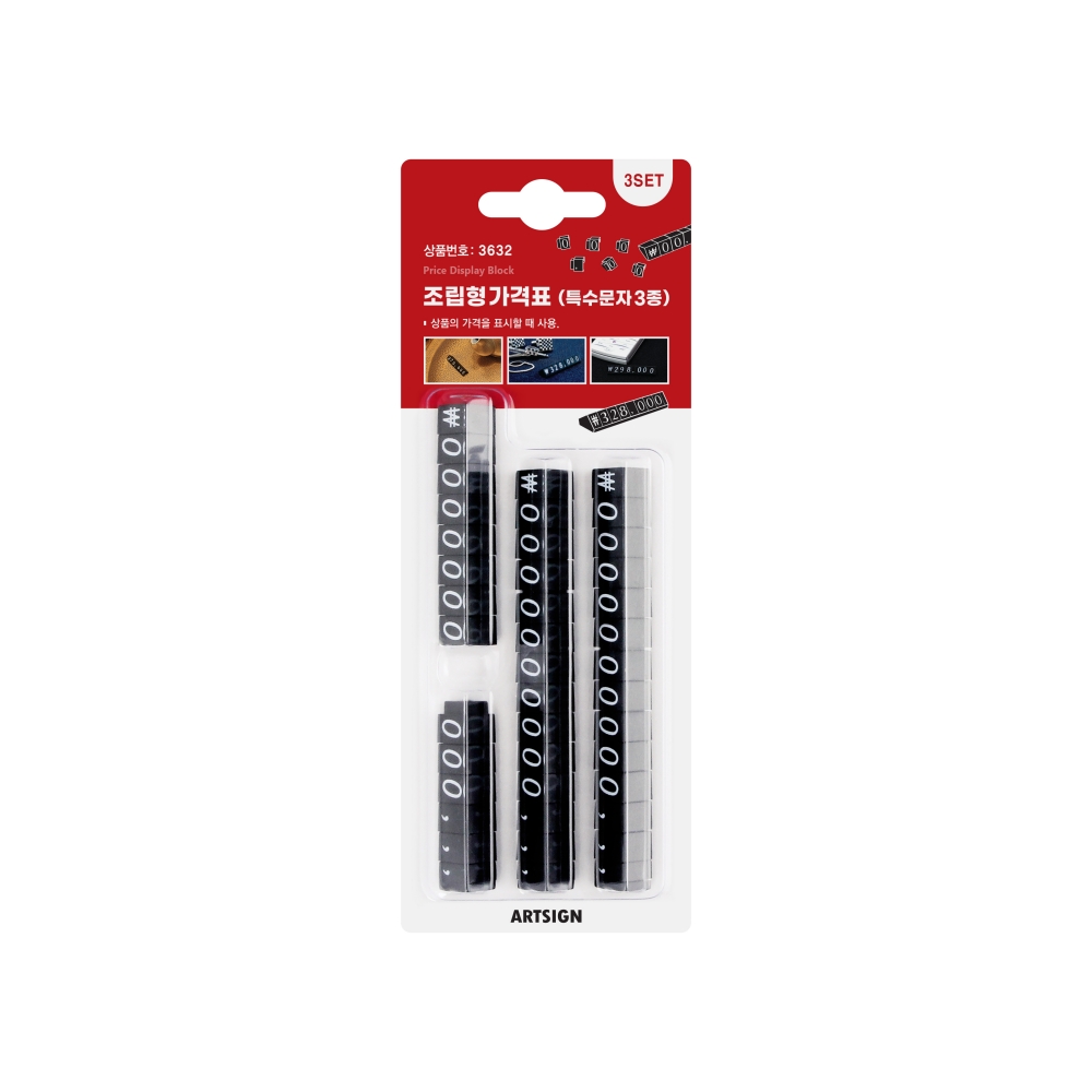 포장단위 3세트- 1세트 구성: 14블록 / 0번: 10개입 / 콤마(,): 3개입 / ₩: 1개입