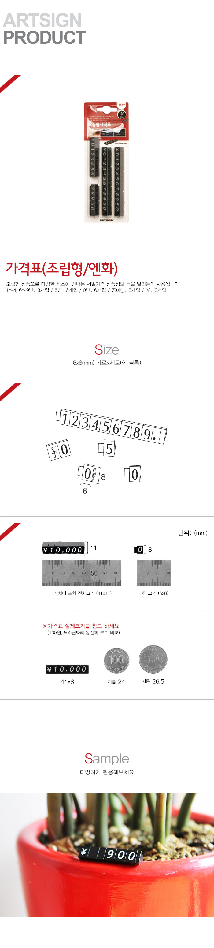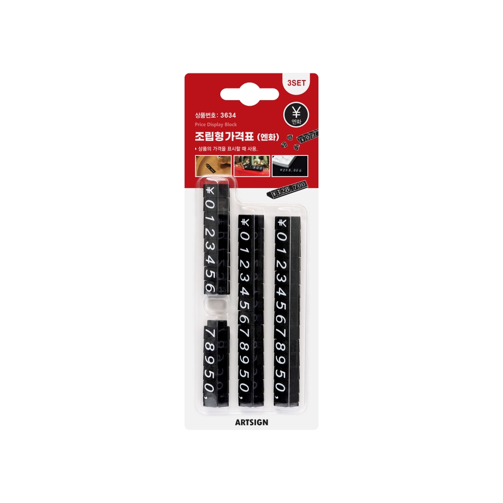 포장단위 3세트 - 1세트 구성: 14블록 / 1~9번: 각 1개입(5번: 2개입) / 0번: 2개입 / 콤마(,): 1개입 / ¥: 1개입