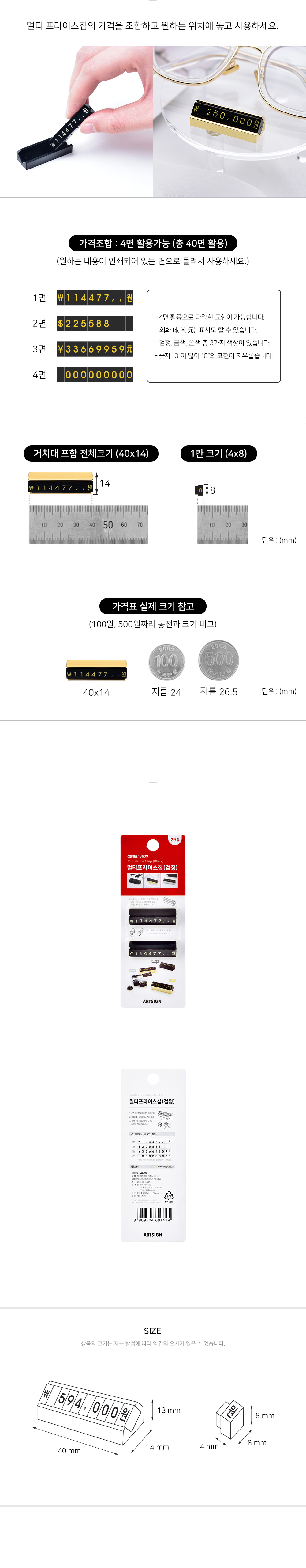 다양한 숫자와 외화표시도 가능하며 4면(총40면) 활용으로 다양한 표현이 가능합니다.