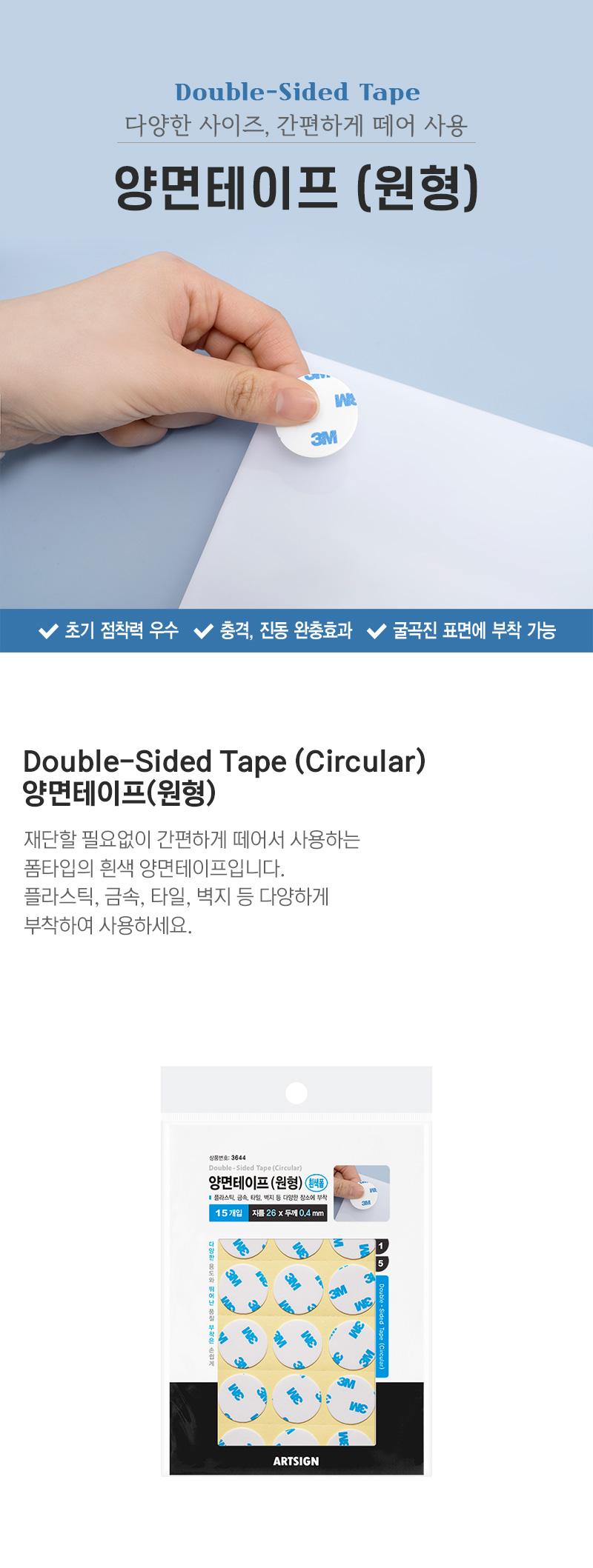 · 주의사항: 직사광선을 피해 보관하세요. / 낮은 온도의 환경에서는 접착력이 저하될 수 있습니다.