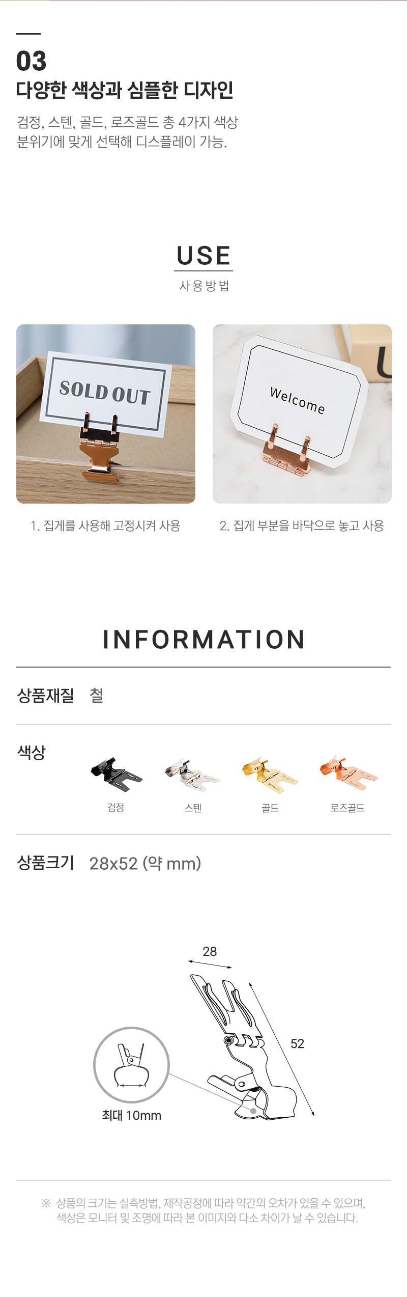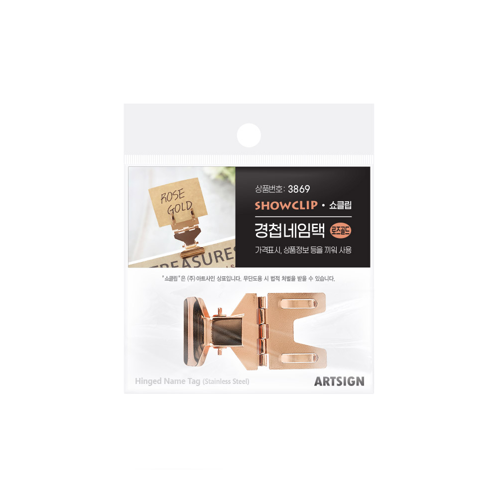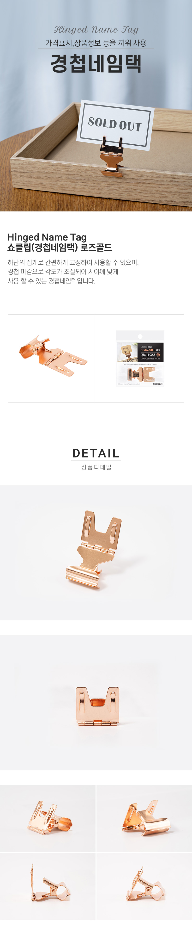 가격표시, 상품정보 등을 끼워 정보전달에 효과적인 도움을 주는 경첩네임텍입니다.