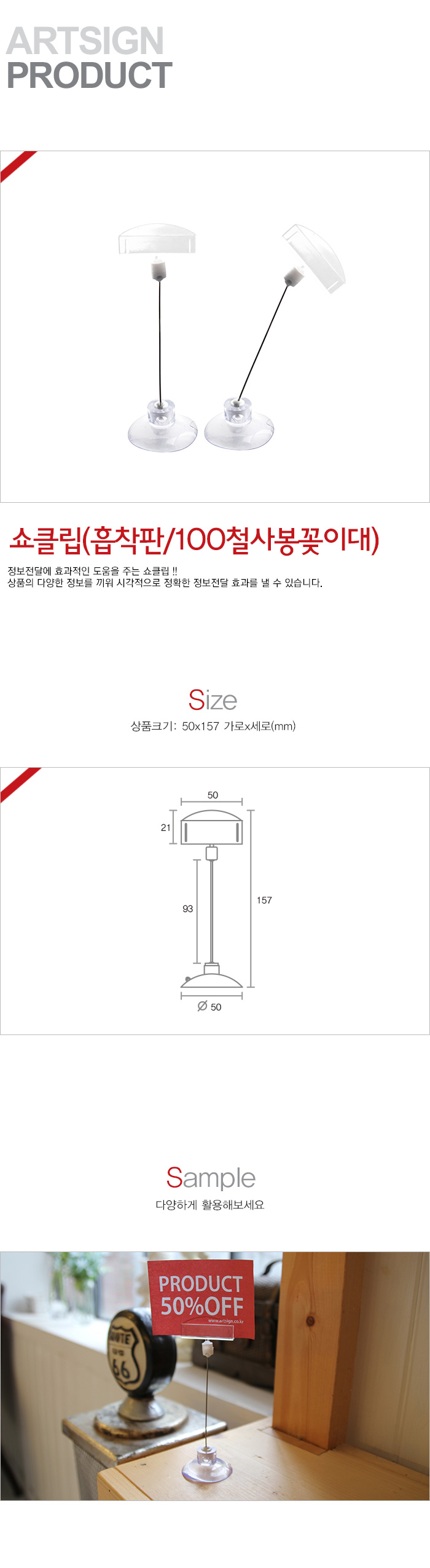 • 쇼클립(흡착판50/철사봉100/꽂이대)
