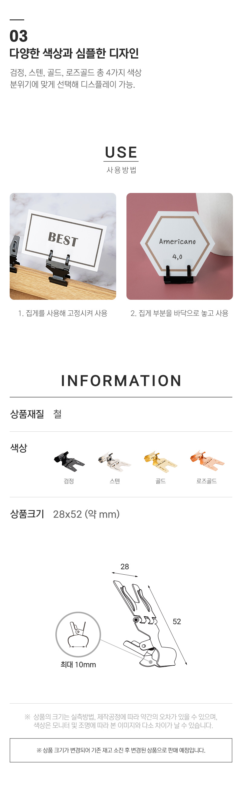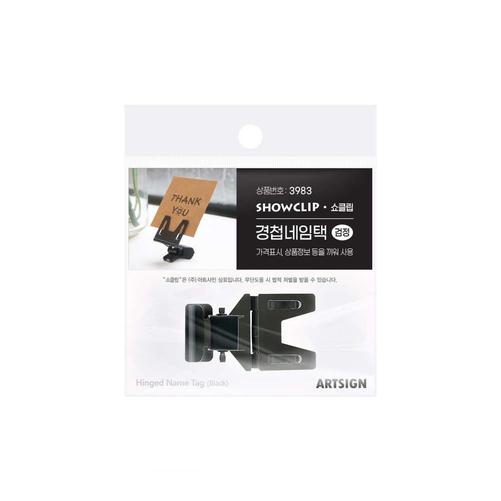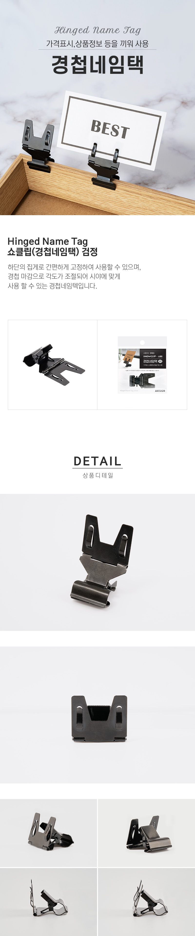 가격표시, 상품정보 등을 끼워 정보전달에 효과적인 도움을 주는 경첩네임텍입니다.