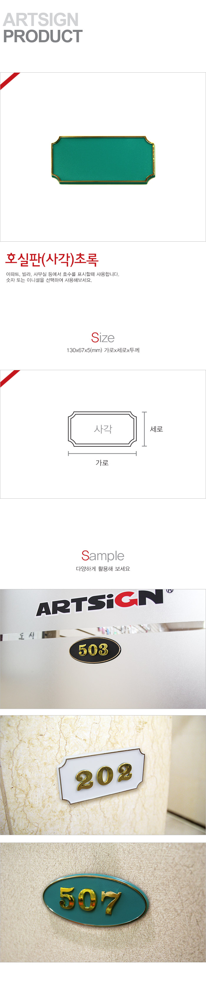 • 호실판(사각/초록)