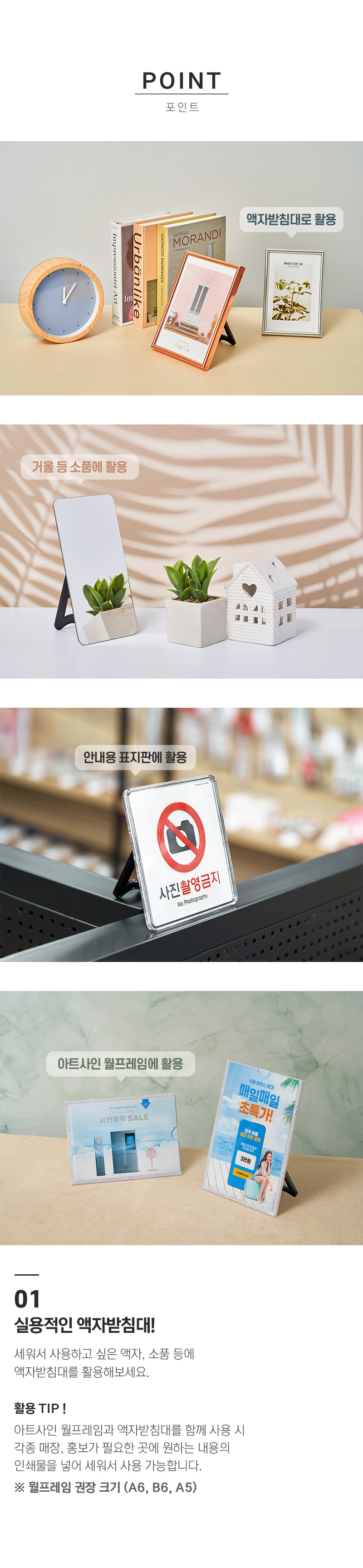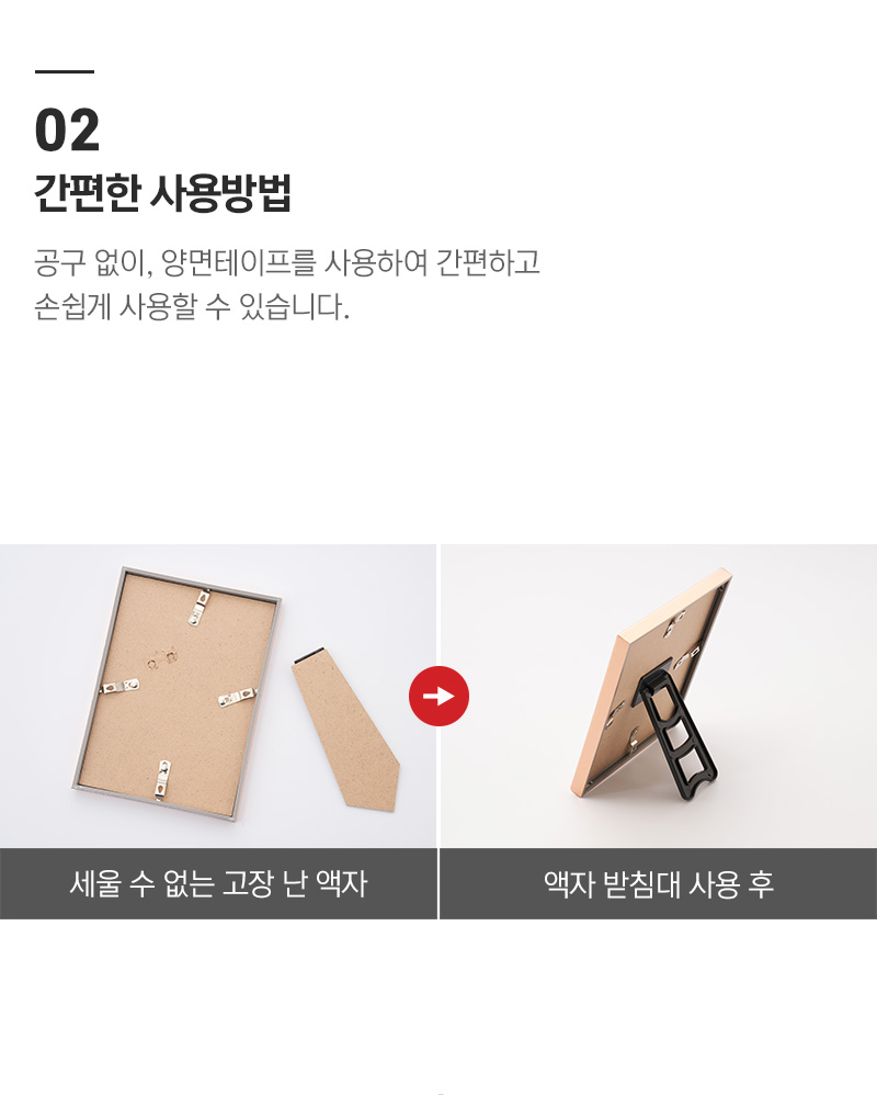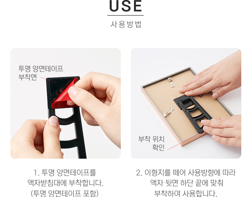 · 사용방법: 양면테이프 접착면의 이형지 제거 후, 액자 뒷면 하단 끝에 맞춰 부착하여 사용하세요. |