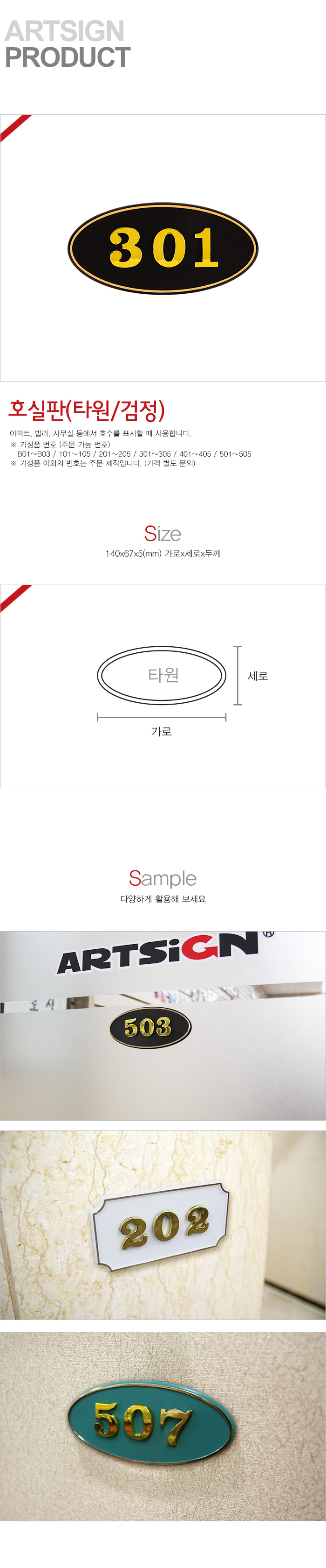 • 호실판(타원/검정)