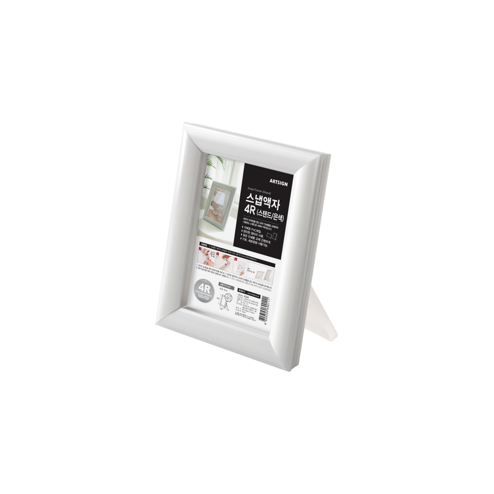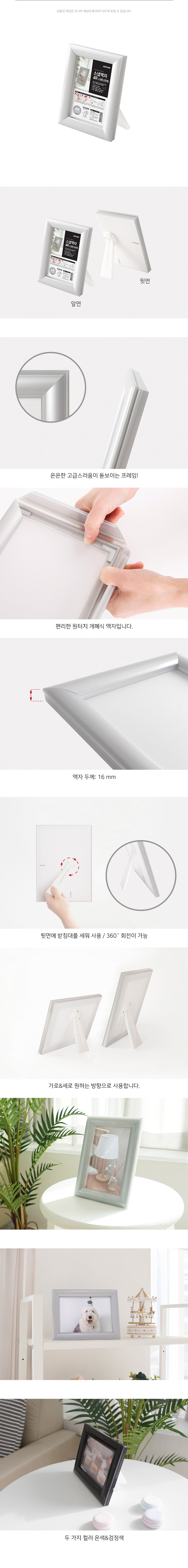 사용방법: 테두리 프레임을 열어 앞면 커버를 꺼낸 뒤, 액자와 앞면 커버 사이에 인쇄물을 넣고 프레임을 닫아 받침대를 세워 사용합니다.