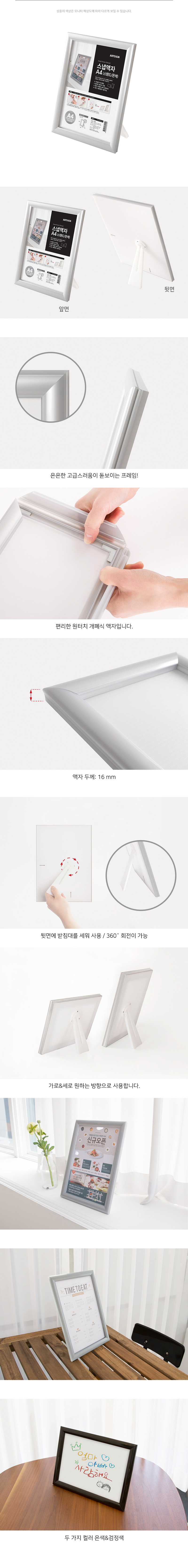 테두리 프레임을 원터치로 열고 닫아 사용하는 스탠드용 개폐식 액자입니다.