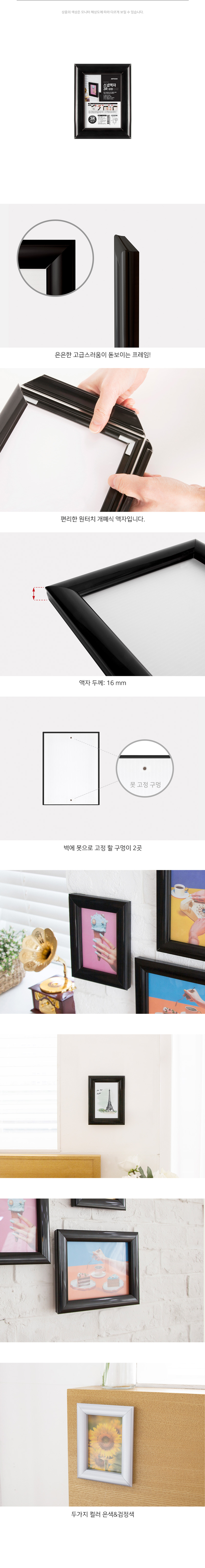테두리 프레임을 원터치로 열고 닫아 사용하는 벽고정용 개폐식 액자입니다.