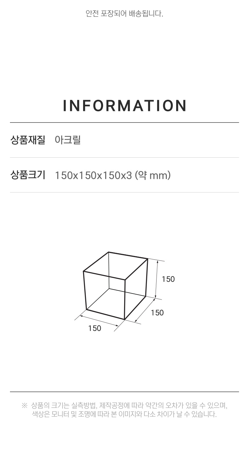 상품크기 150x150x150x3 (mm) 가로x세로x높이x두께