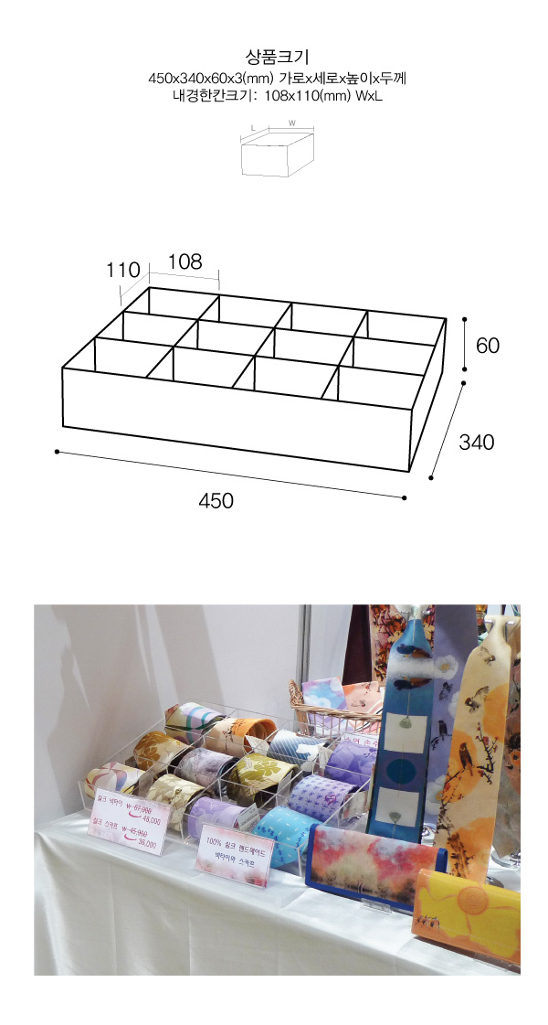 상품크기 450x340x60x2 (mm) 가로x세로x높이x두께