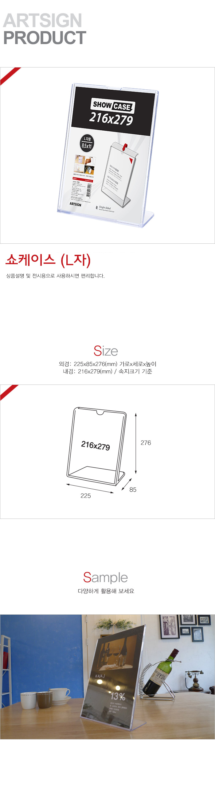 ★ 쇼케이스(L자) 8.5x11(216x279mm)는 A4(210x297mm) 속지크기도 넣어 사용할 수 있습니다. ★