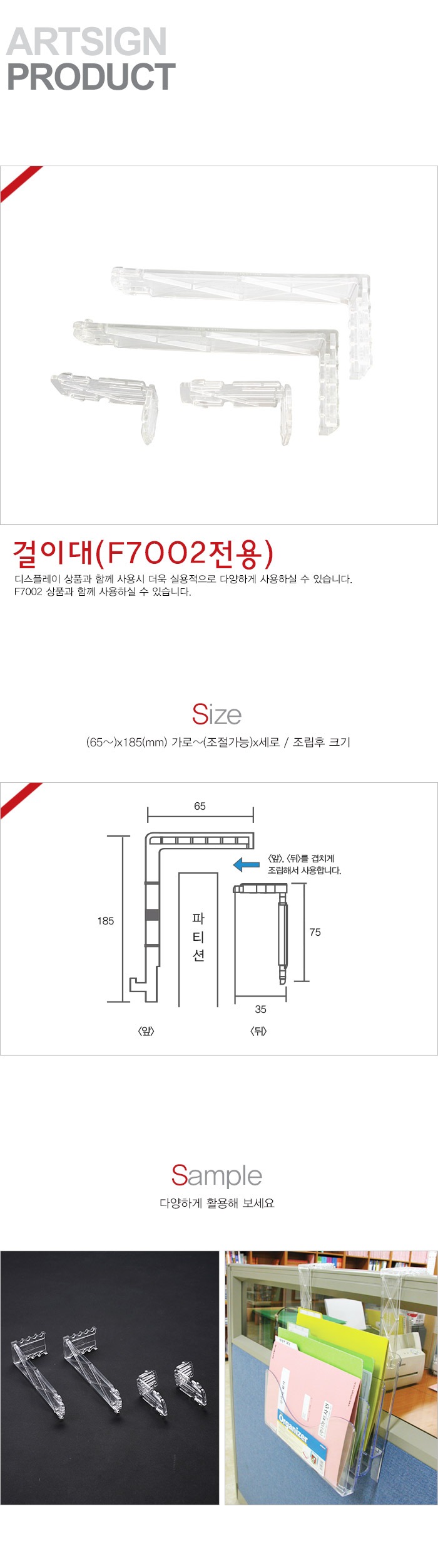 상품크기 (65~)x185 (mm) 가로(조절가능)x세로