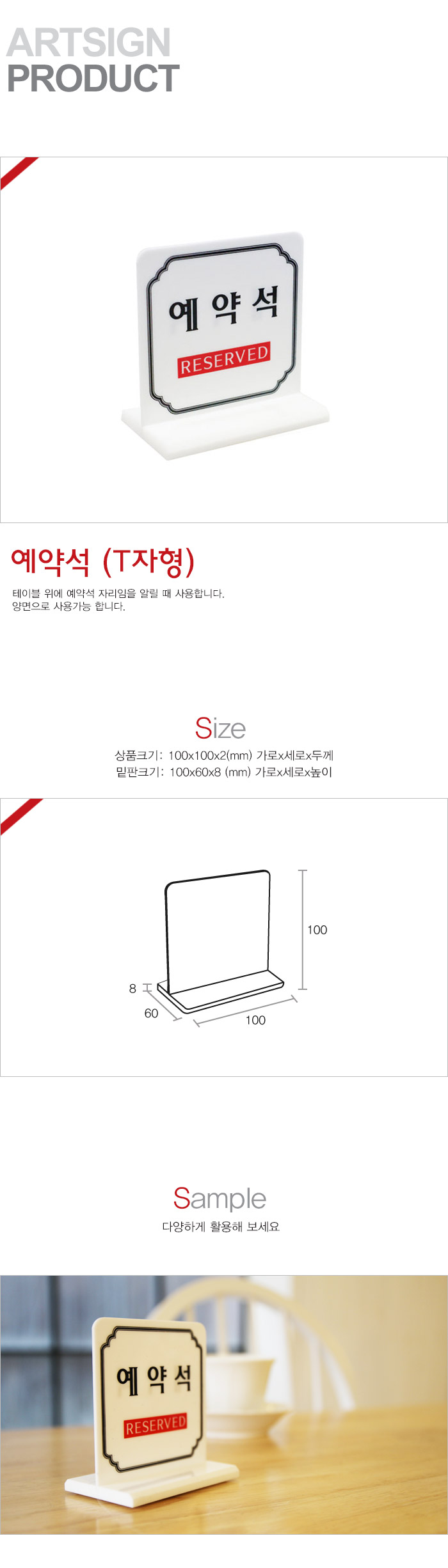상품크기 100x100x2 (mm) 가로x세로x두께, 100x60x8 (mm) / 밑판크기