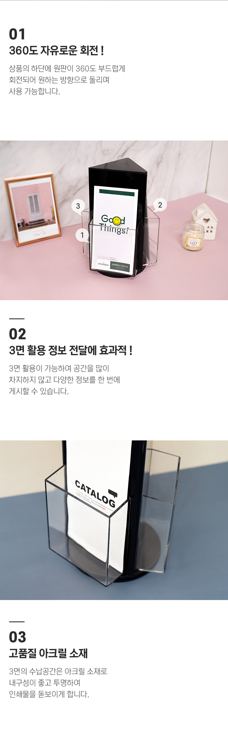 360도 자유로운 회전, 3면 활용으로 정보전달에