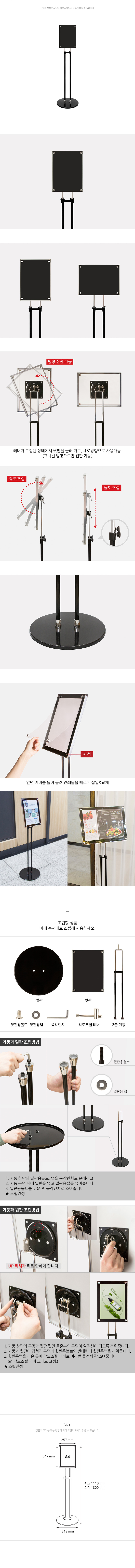 사용방법: 아래 상세 이미지를 참고해 조립한 뒤, 원하는 장소에 세워놓고 A4 크기의 인쇄물을 넣고 사용하세요.