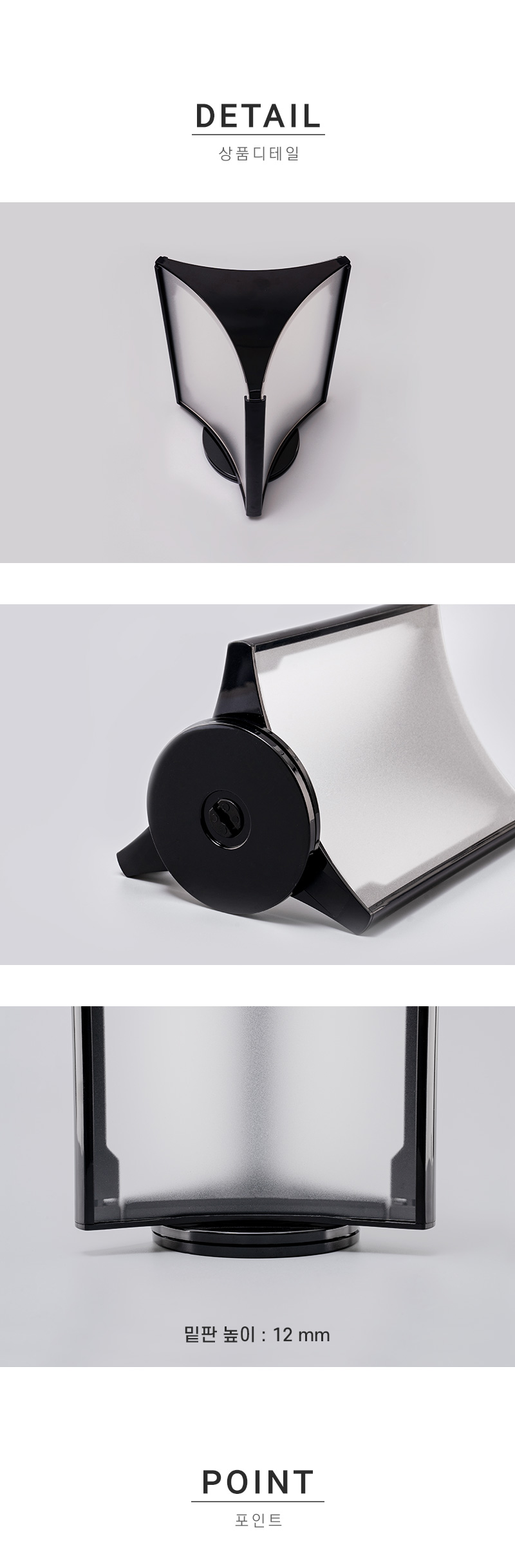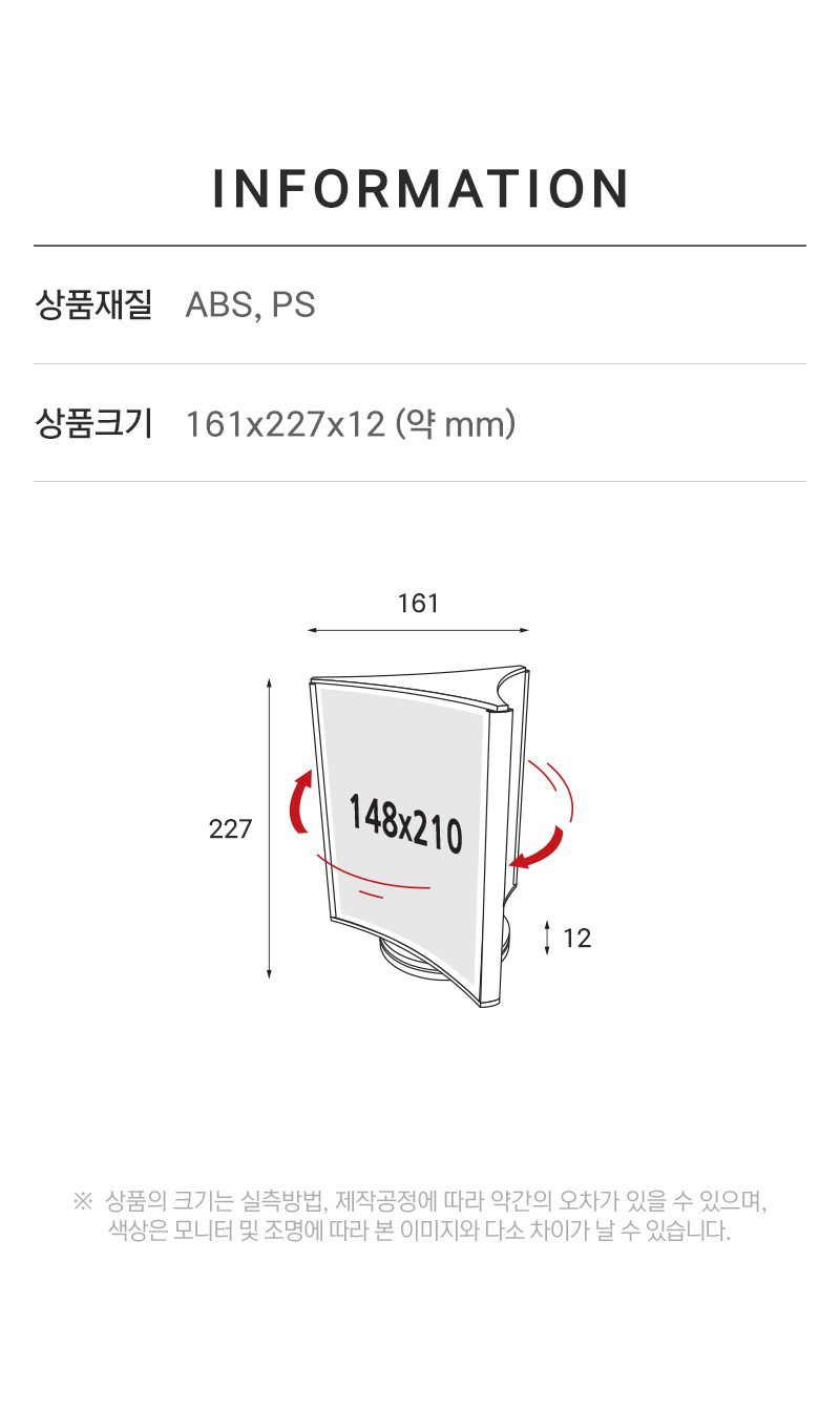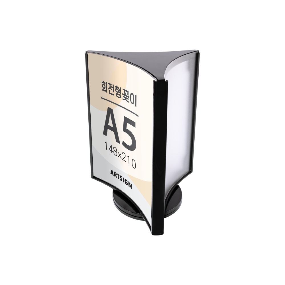 360도 자유로운 회전, 3면 활용으로 정보전달에 · 사용방법: 원하는 장소에 놓고 A5 크기의 인쇄물을 3면에 삽입하여 사용하세요. |
