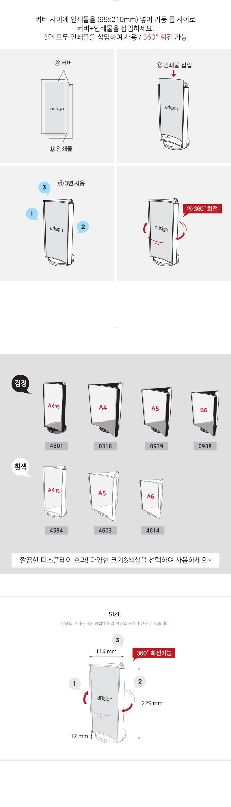360도 자유로운 회전, 3면 활용으로 정보전달에 효과적인 회전형 꽂이입니다.