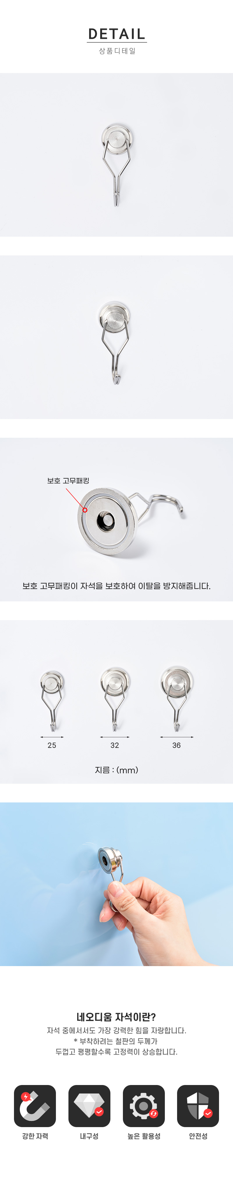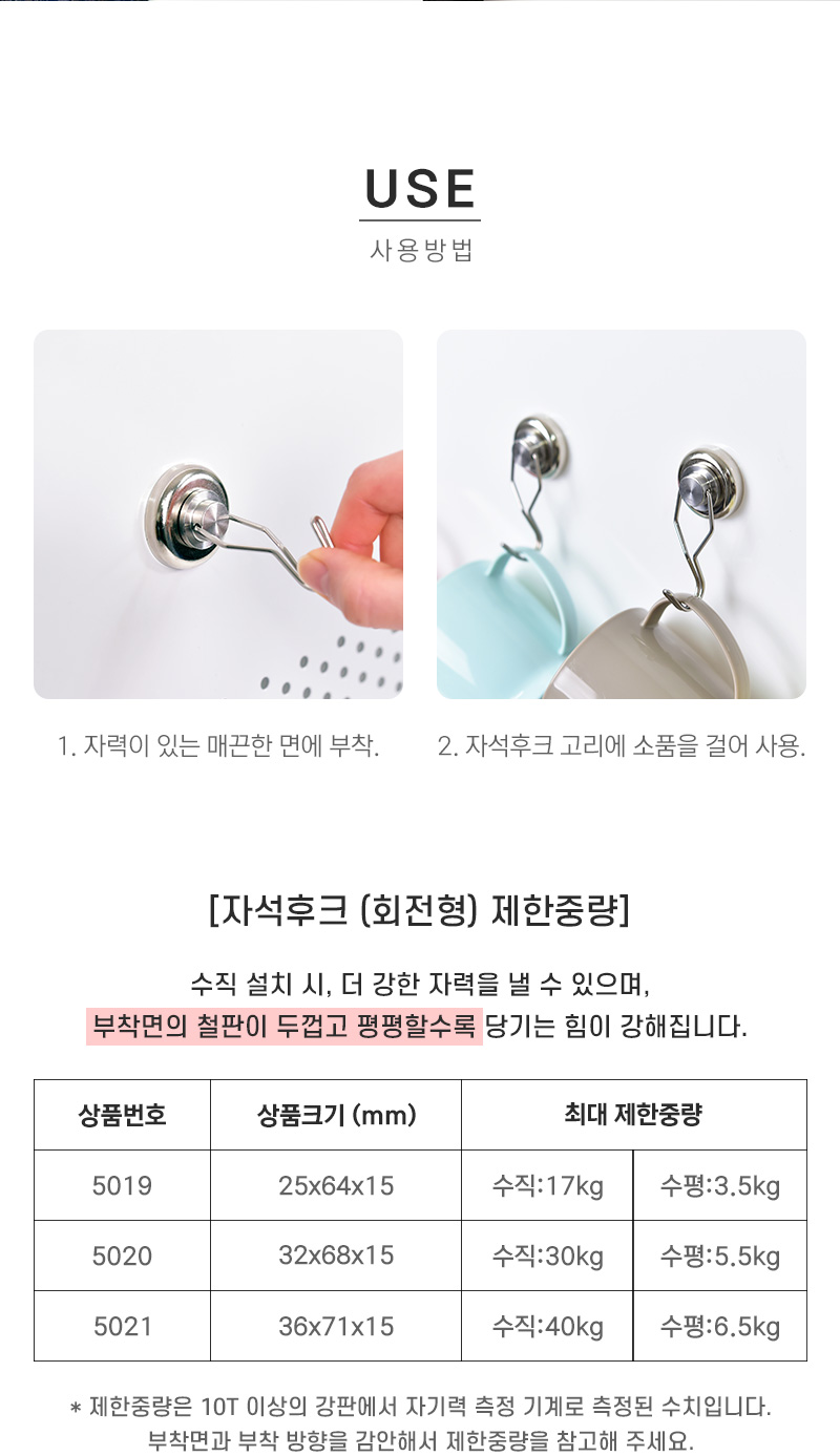 · 사용방법: 자력이 있는 매끈한 면에 부착 후 다양한 소품을 걸어 사용.