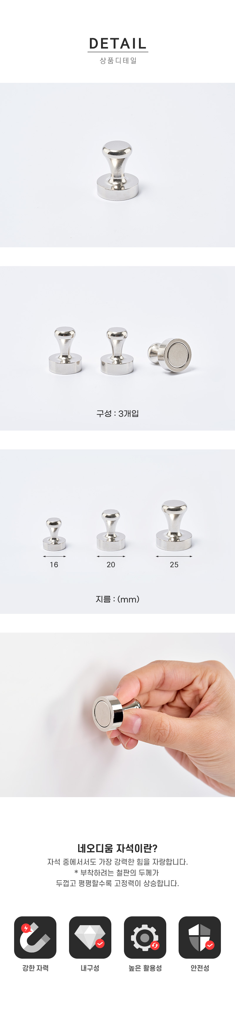자석이 붙는 곳에서 메모, 서류, 명함, 사진 등을 · 사용방법: 자력이 있는 매끈한 면에 부착 후 다양한 소품을 걸어 사용. |
