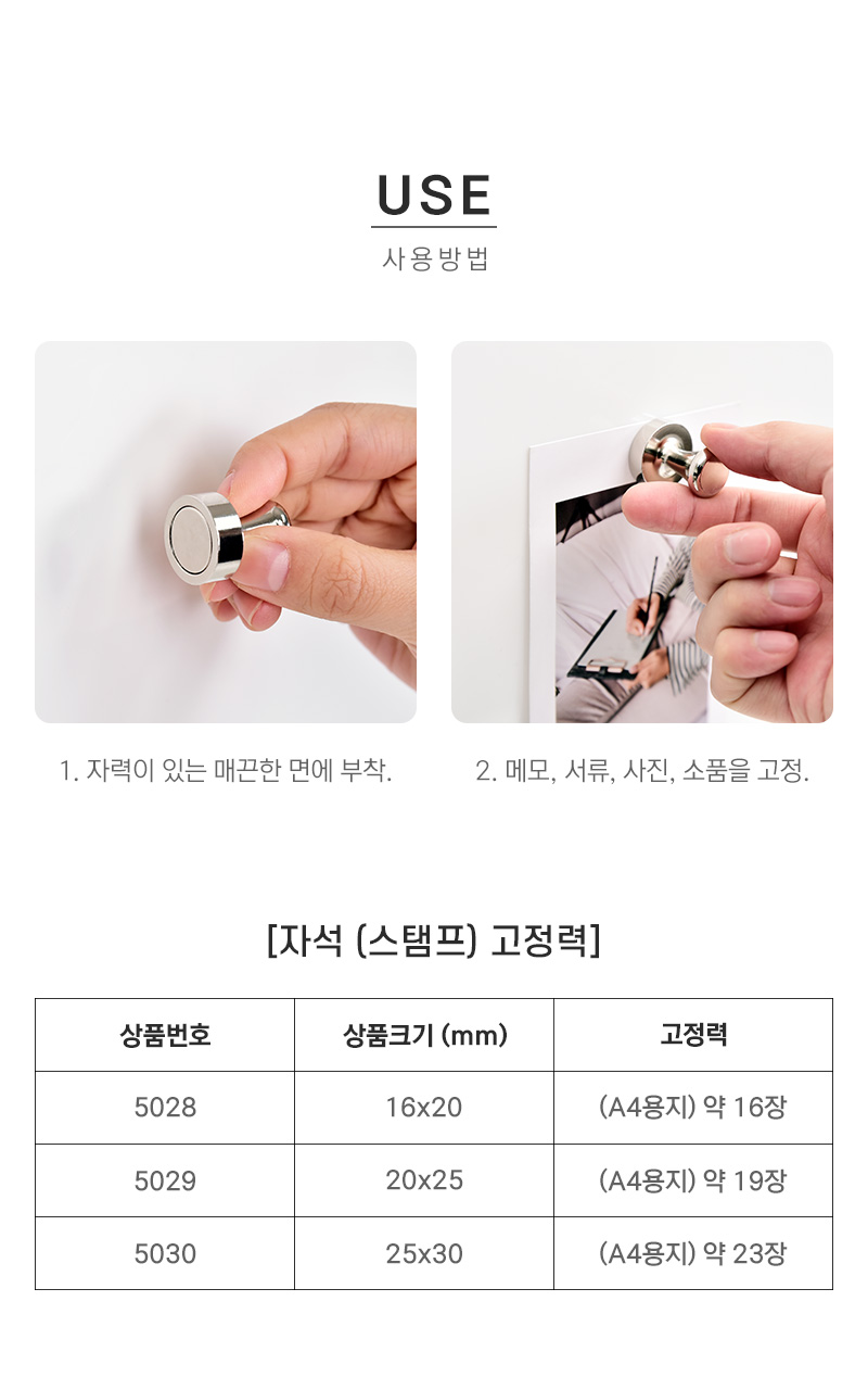 자석이 붙는 곳에서 메모, 서류, 명함, 사진 등을