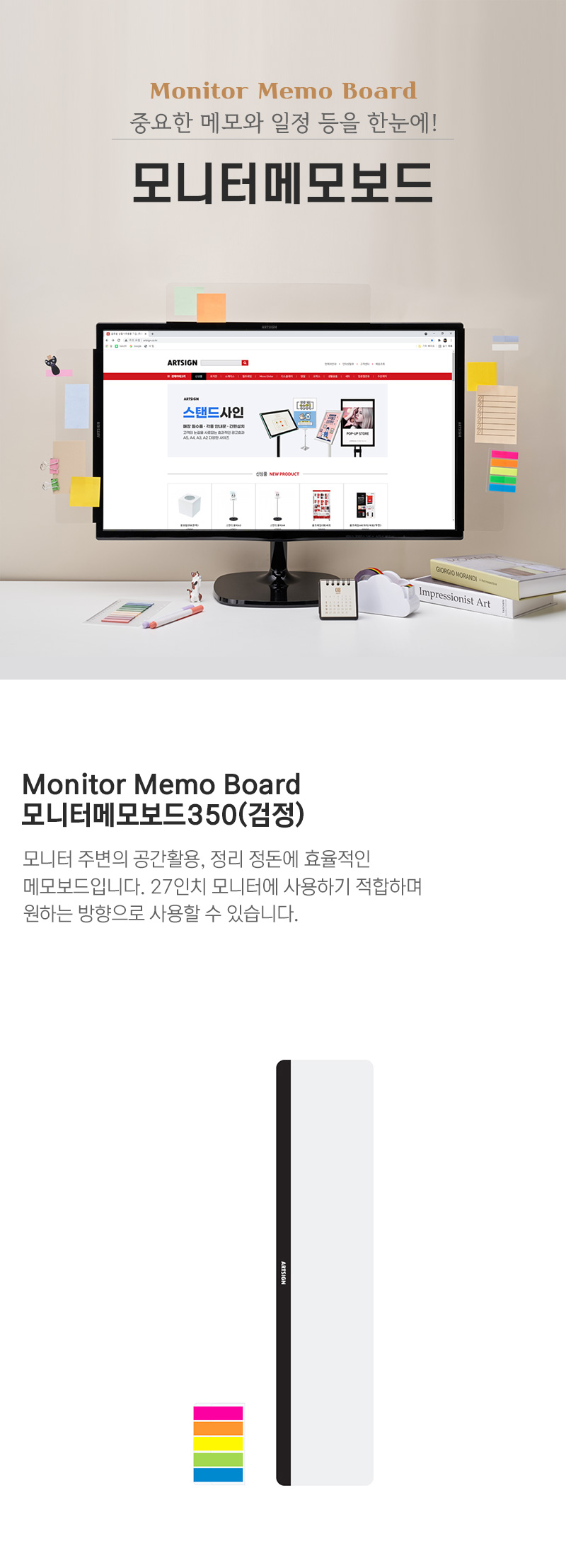 모니터 주변의 공간활용, 정리정돈에 효율적인 모니터 메모보드입니다.