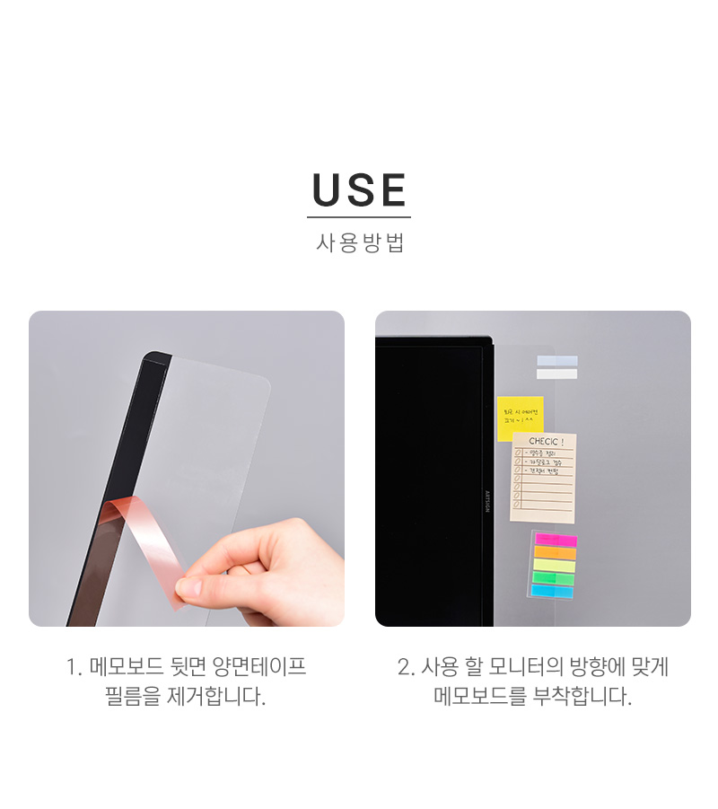 · 사용방법: 뒷면 접착테이프에 필름을 제거 후 모니터에 부착하여 사용하세요.