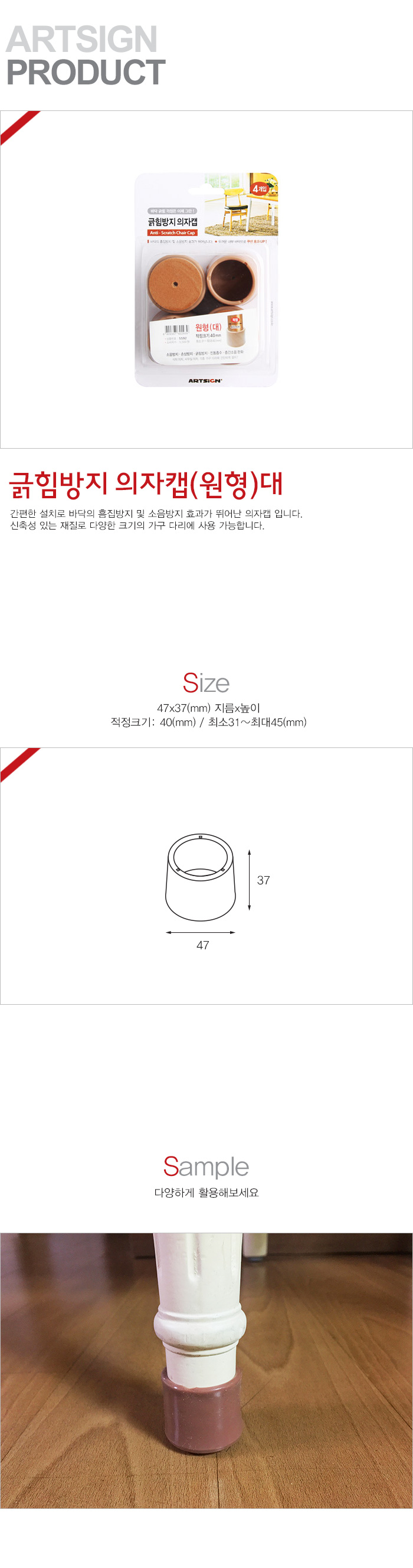 상품크기 47x37 (mm) 지름x높이, 적정크기: 40 (mm) / 최소31~최대45 (mm)