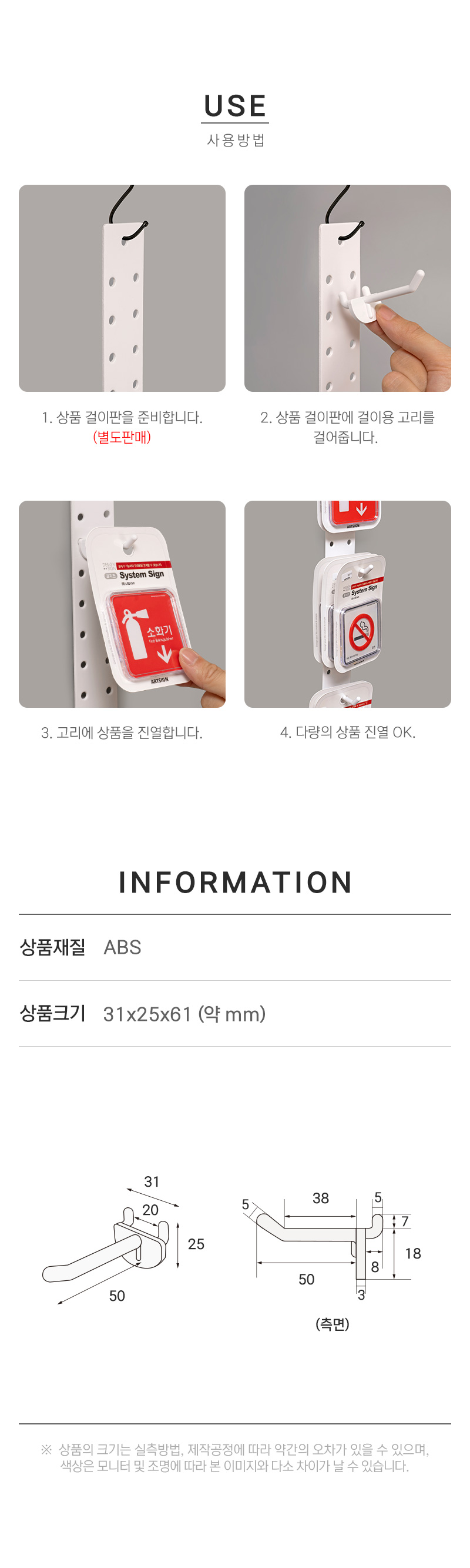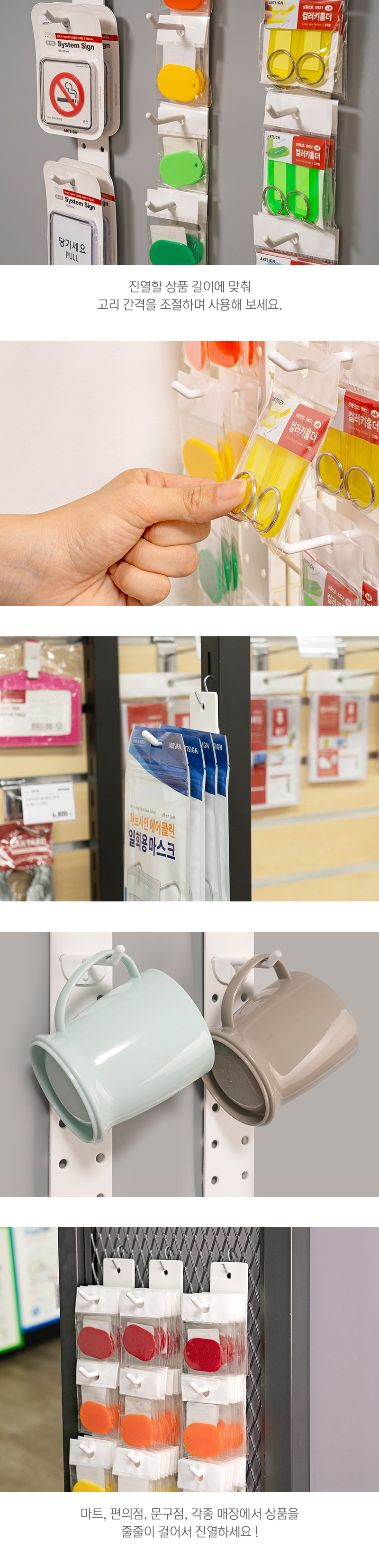 · 사용방법: 상품 걸이판에 걸이용 고리를 걸어 상품을 진열합니다. |