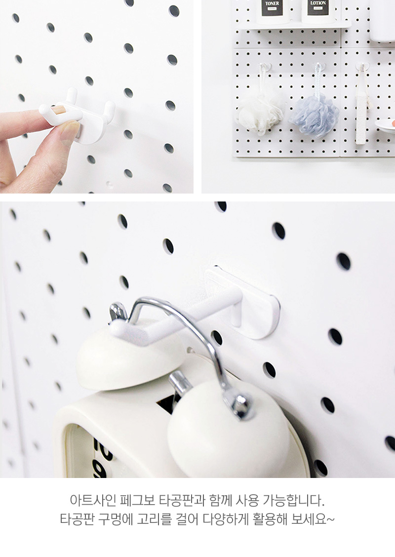 상품 걸이판에 고리를 걸어서 다양한 상품을 진열하세요.