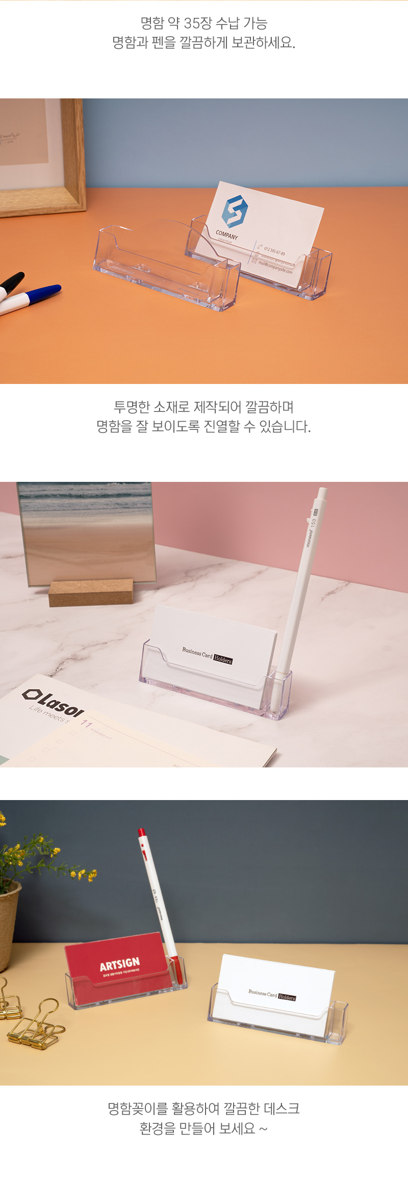 명함꽂이를 활용해 깔끔한 데스크 환경을 만들어보세요.