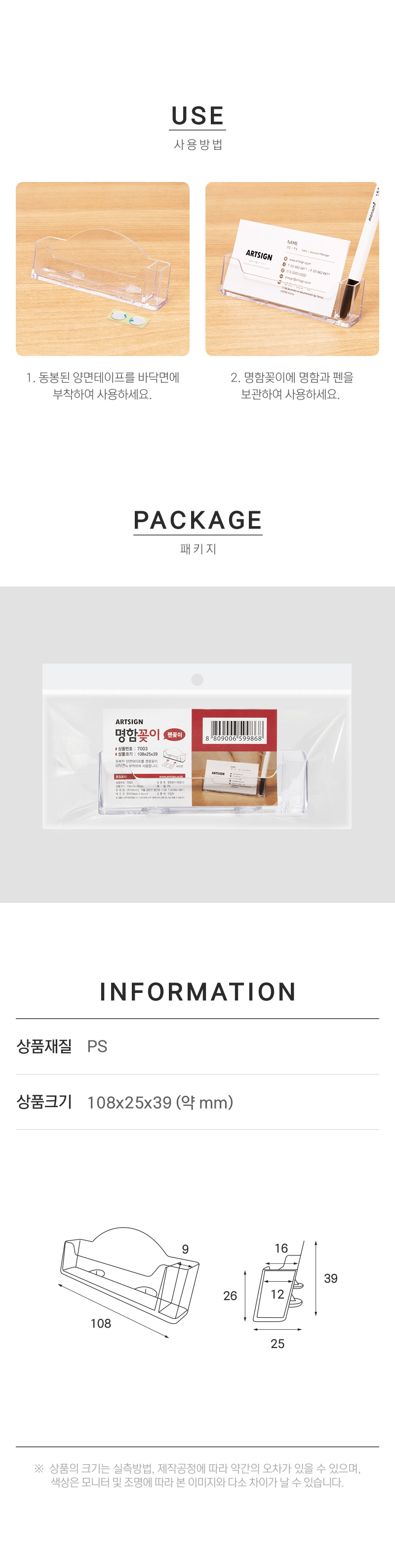 상품크기 108x25x39 (mm) 가로x세로x높이