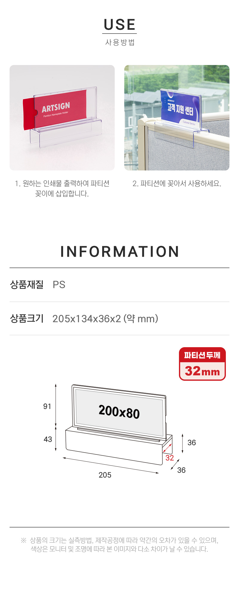 · 사용방법: 파티션의 폭(두께)에 맞는 파티션 꽂이를 꽂아서 사용하세요.