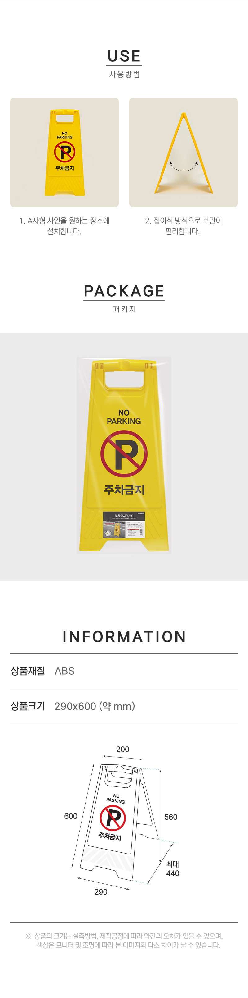 · 사용방법: 원하는 위치에 A형 표지판을 놓고 사용하세요.