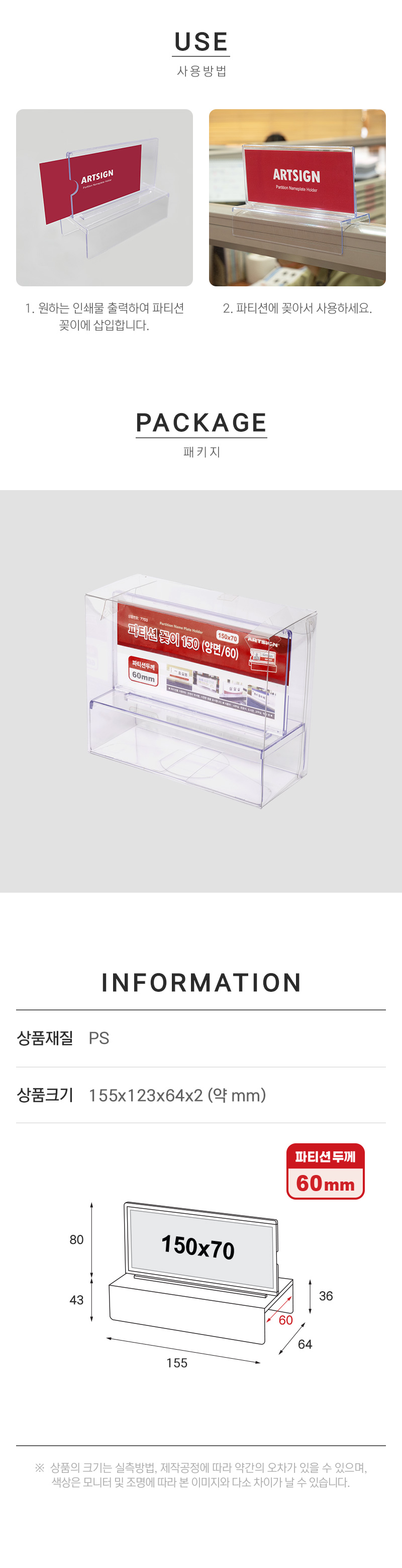 · 사용방법: 파티션의 폭(두께)에 맞는 파티션 꽂이를 꽂아서 사용하세요.