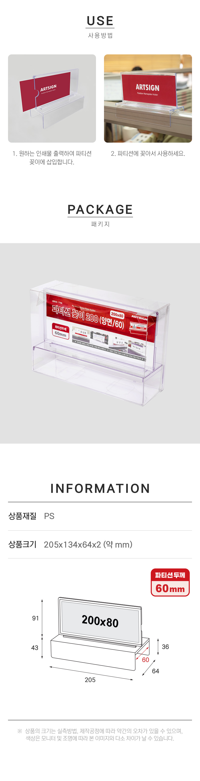 · 사용방법: 파티션의 폭(두께)에 맞는 파티션 꽂이를 꽂아서 사용하세요.