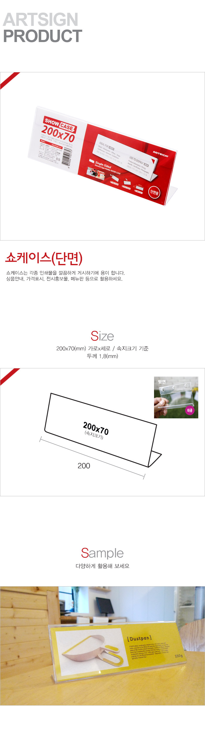 상품크기 200x70 (mm) 가로x세로 / 속지크기 기준, 두께: 1.8 (mm)