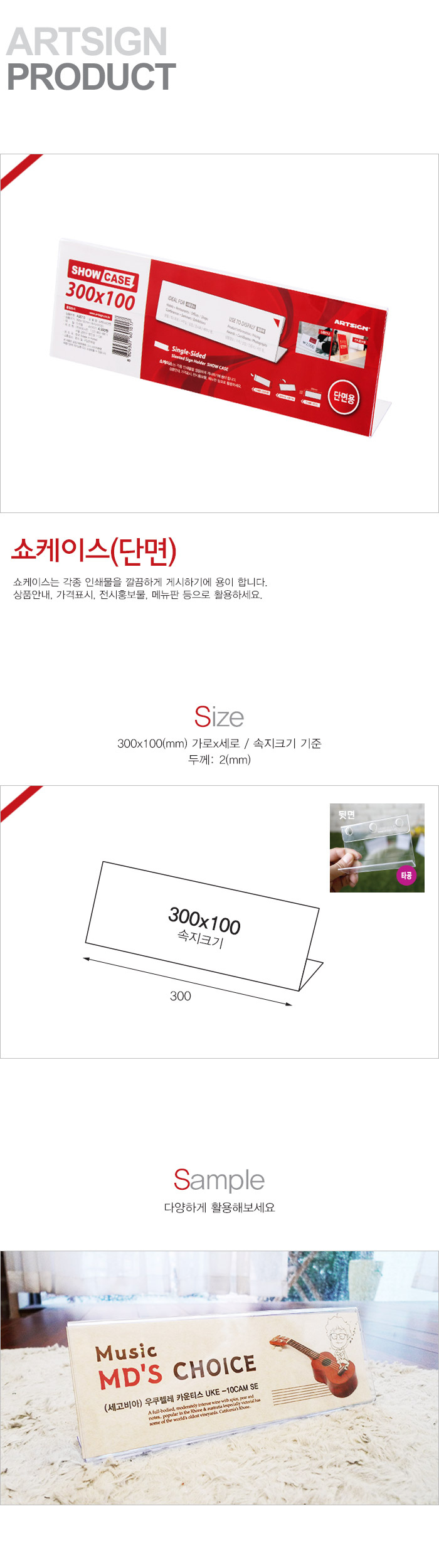 상품크기 300x100 (mm) 가로x세로 / 속지크기 기준, 두께: 1.8 (mm)