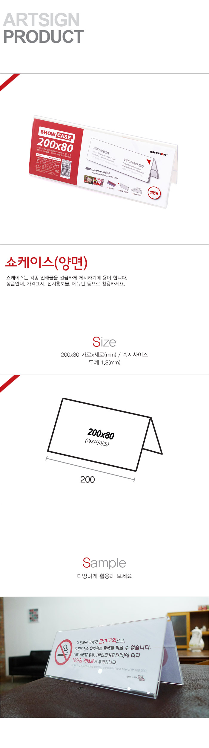 상품크기 200x80 (mm) 가로x세로 / 속지크기 기준, 두께: 2 (mm)