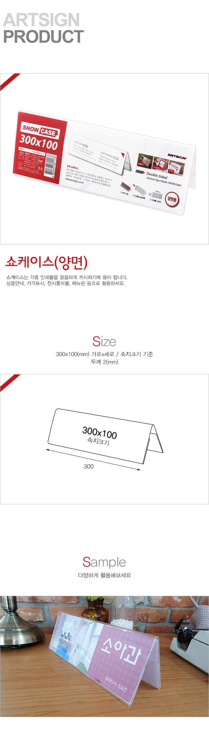 상품크기 300x100 (mm) 가로x세로 / 속지크기 기준, 두께: 2 (mm)