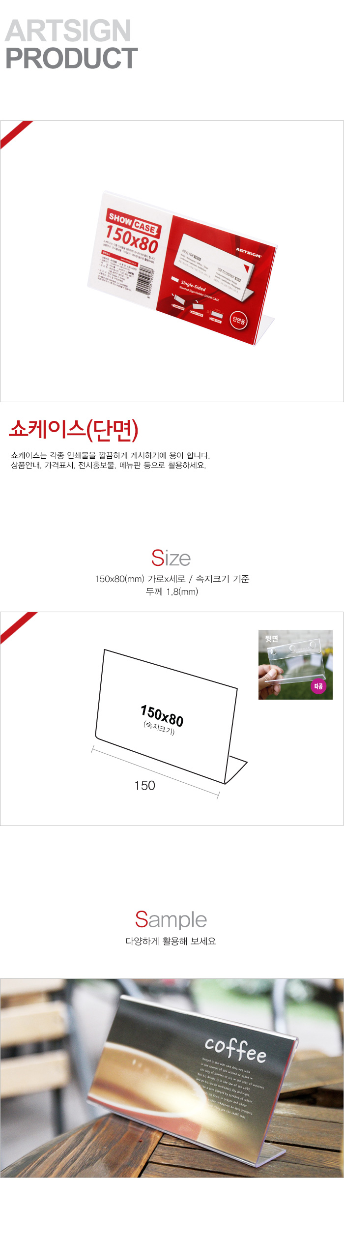 상품크기 150x80 (mm) 가로x세로 / 속지크기 기준, 두께: 1.8 (mm)