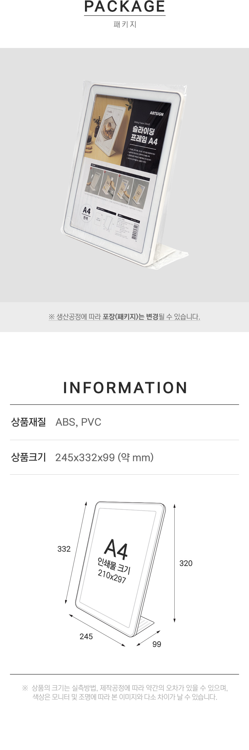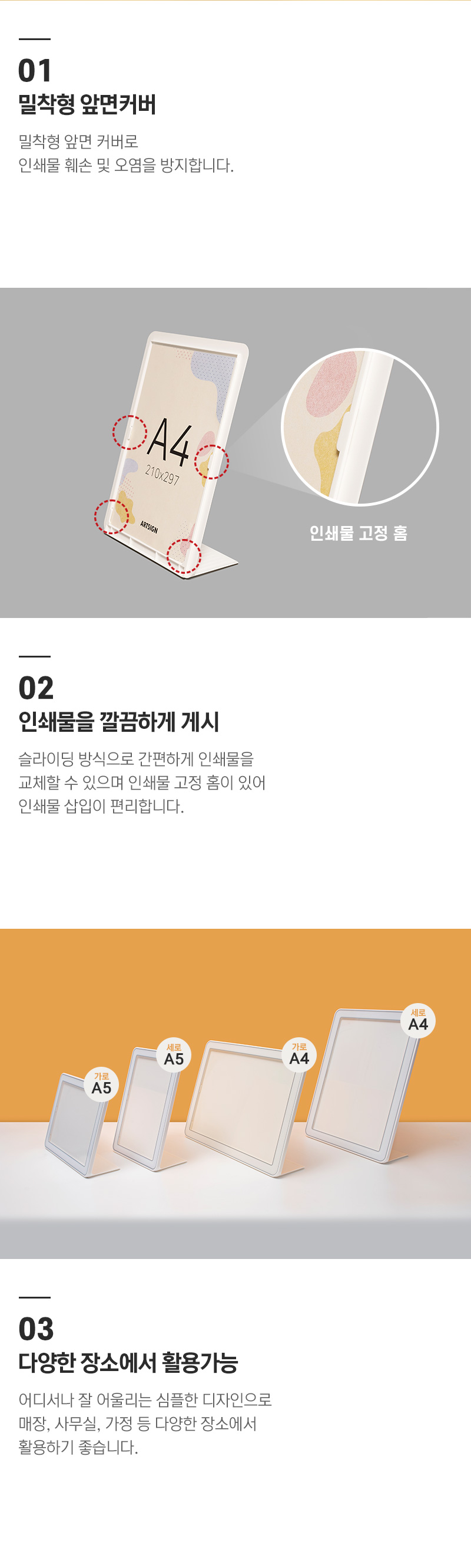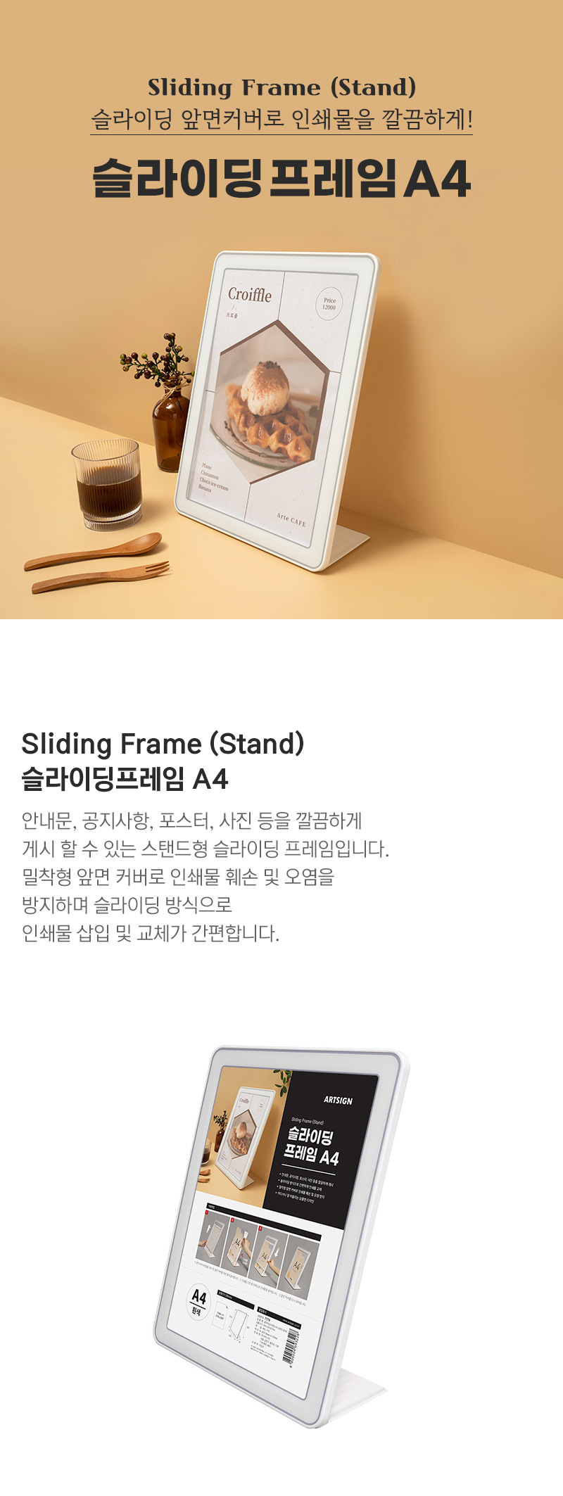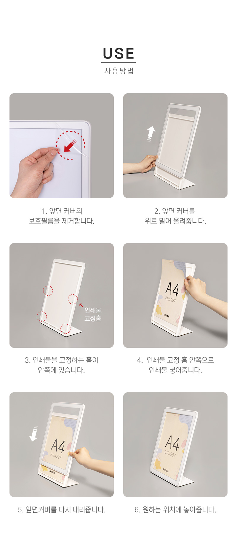 · 사용방법: 슬라이딩프레임에 인쇄물을 삽입하여 사용하세요.