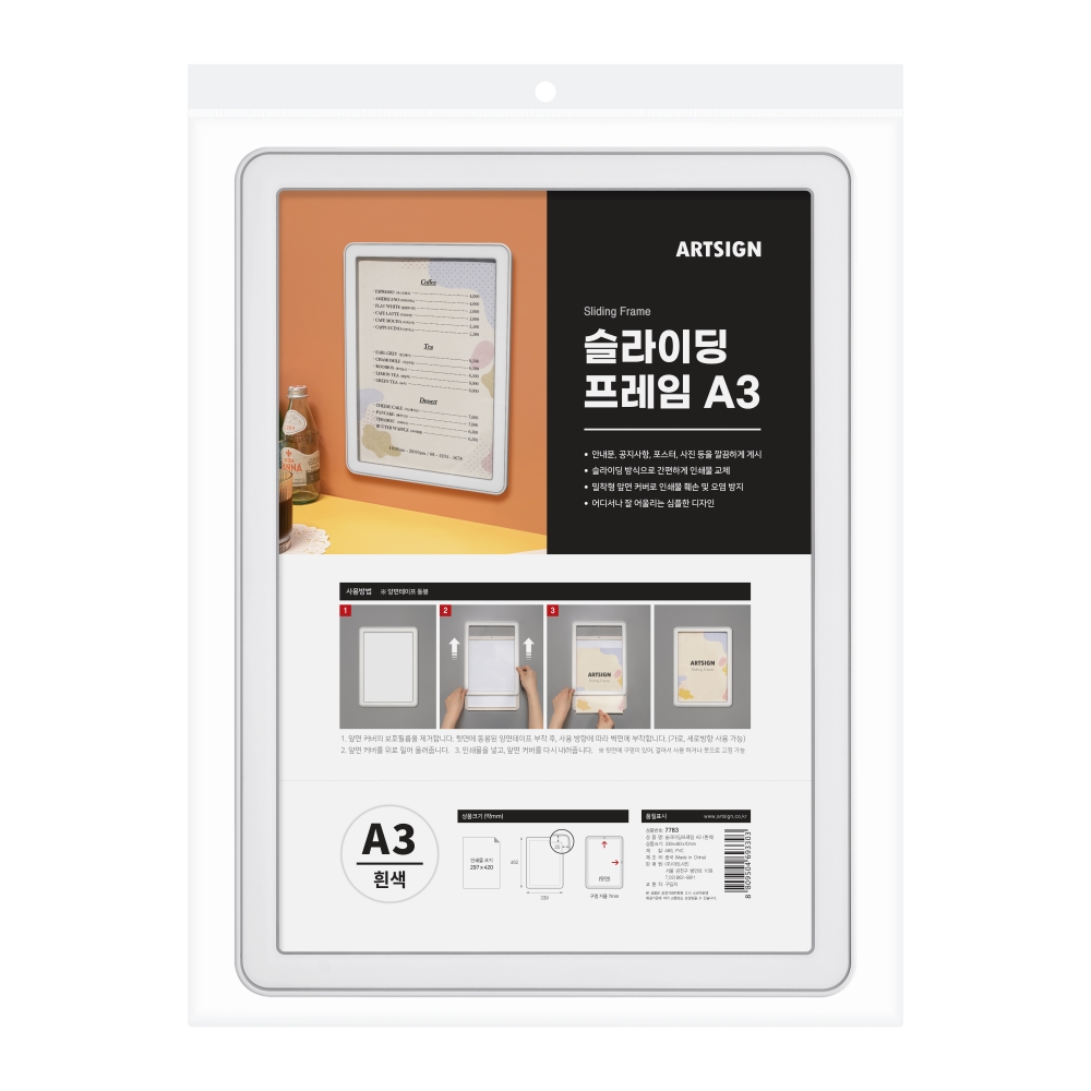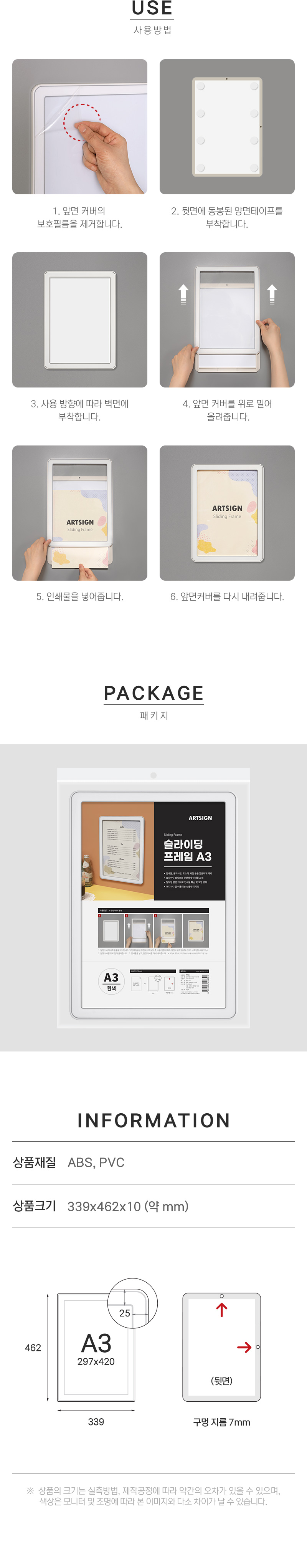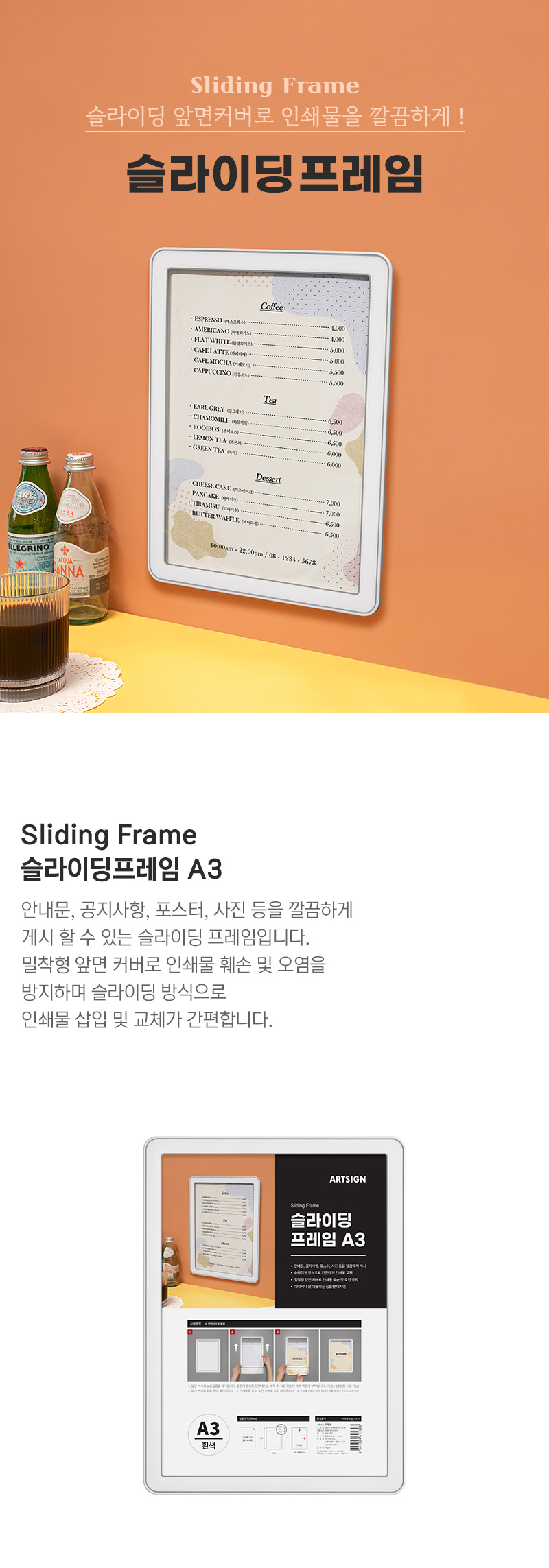 · 사용방법: 슬라이딩프레임에 인쇄물을 삽입하여 사용하세요.