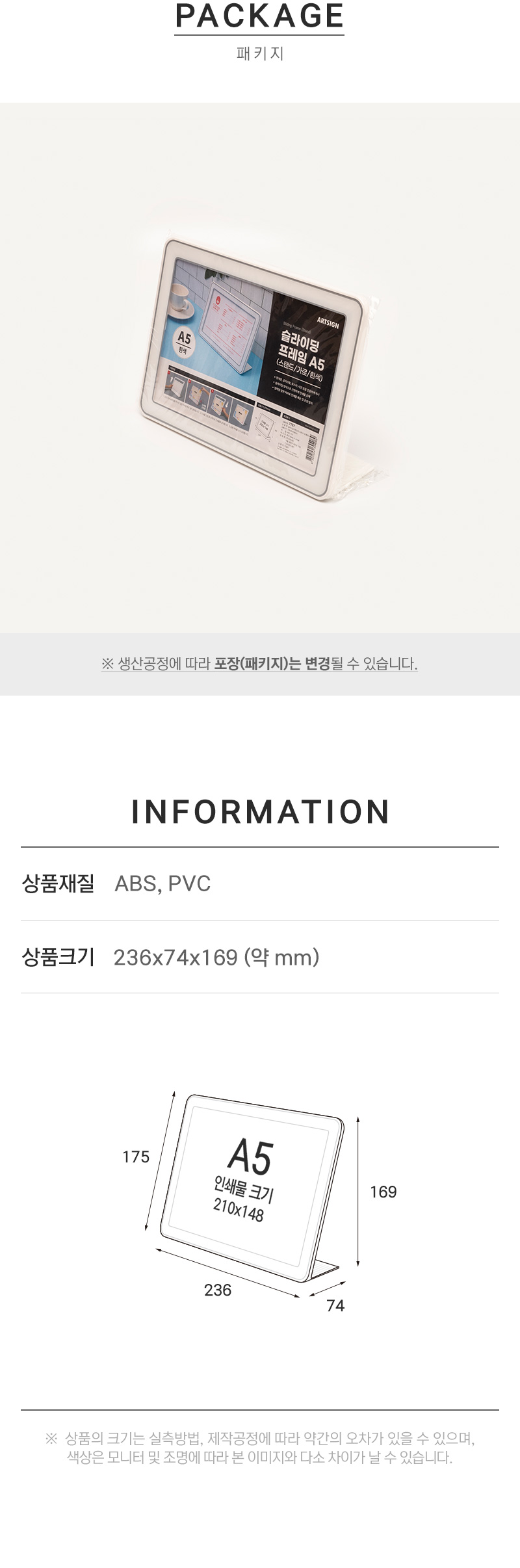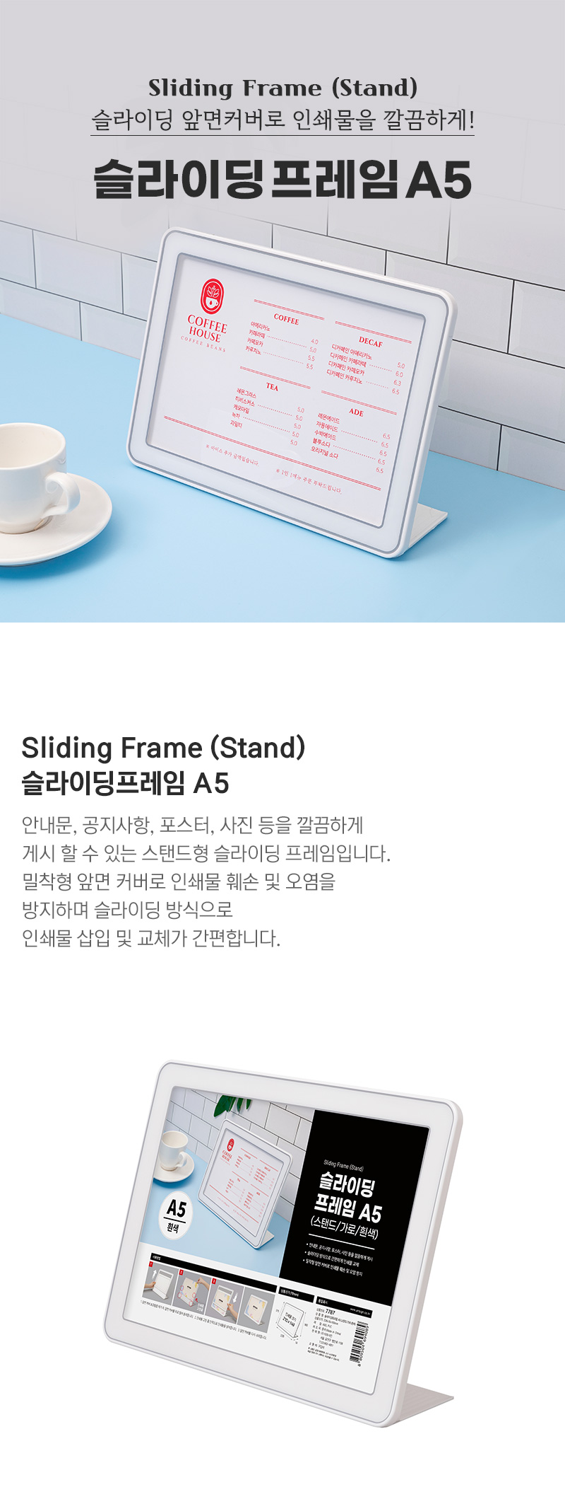 • 슬라이딩프레임A5(스탠드/가로/흰색)