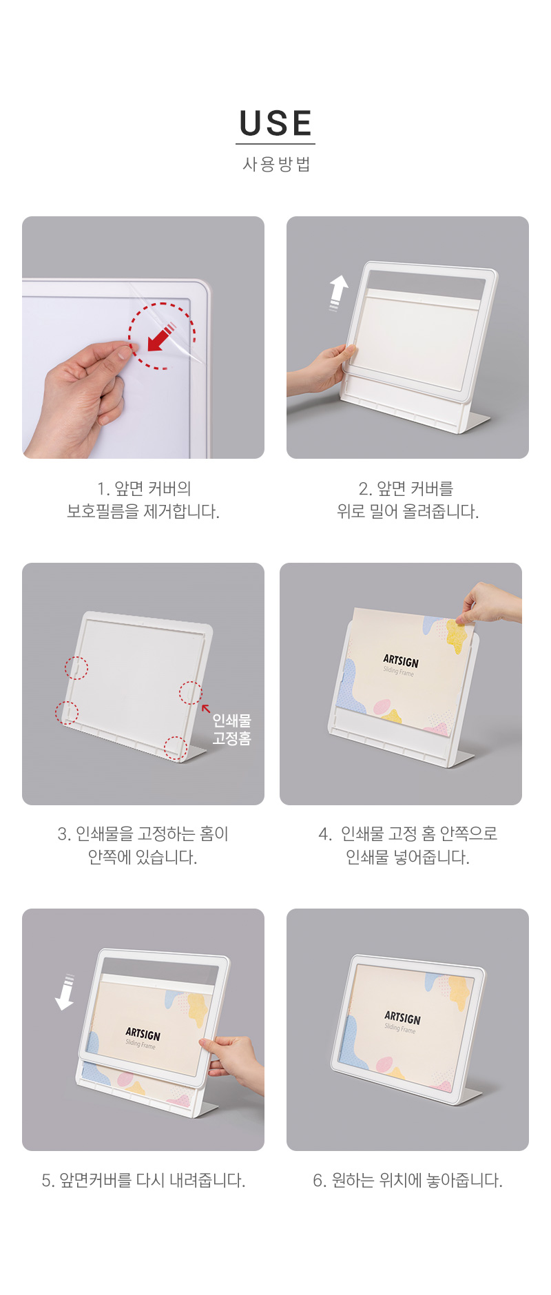 · 사용방법: 슬라이딩프레임에 인쇄물을 삽입하여 사용하세요.