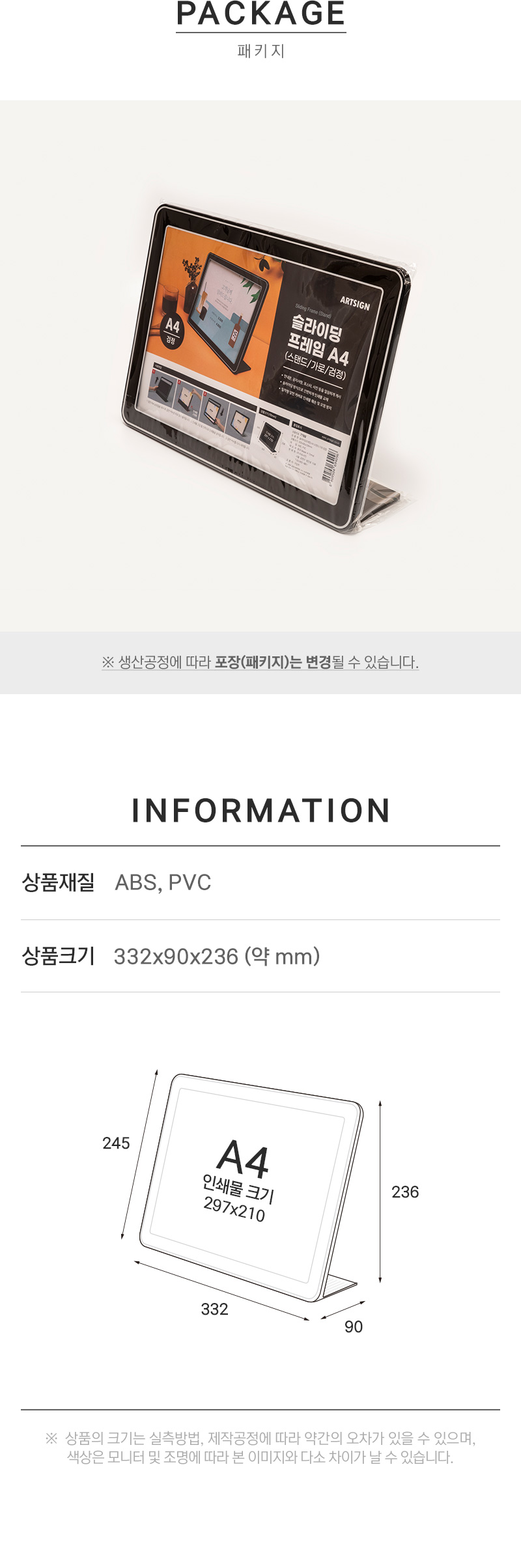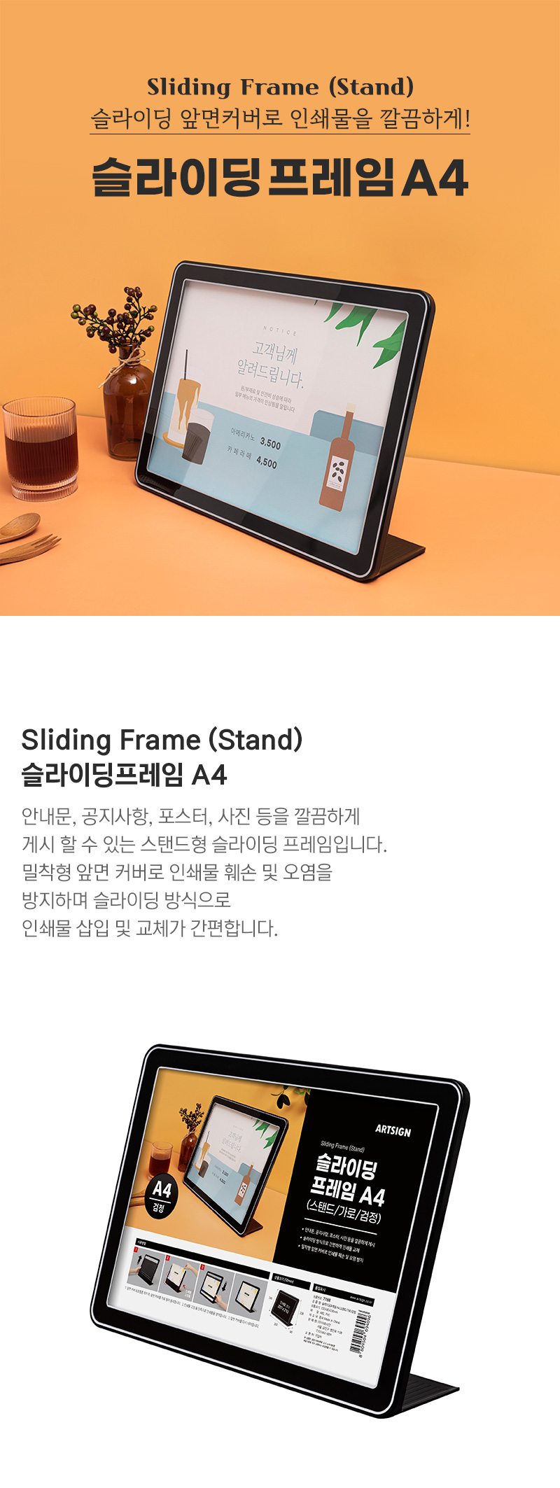 • 슬라이딩프레임A4(스탠드/가로/검정)