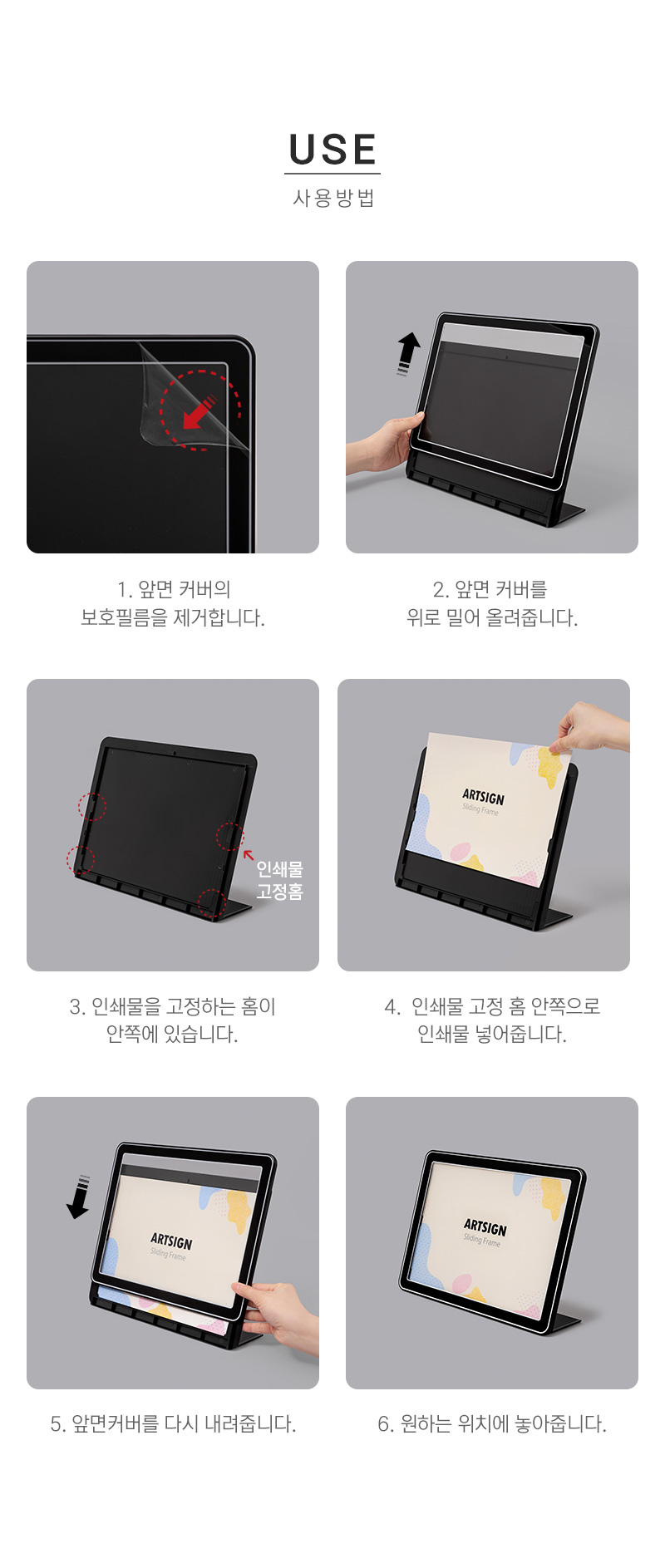 · 사용방법: 슬라이딩프레임에 인쇄물을 삽입하여 사용하세요.