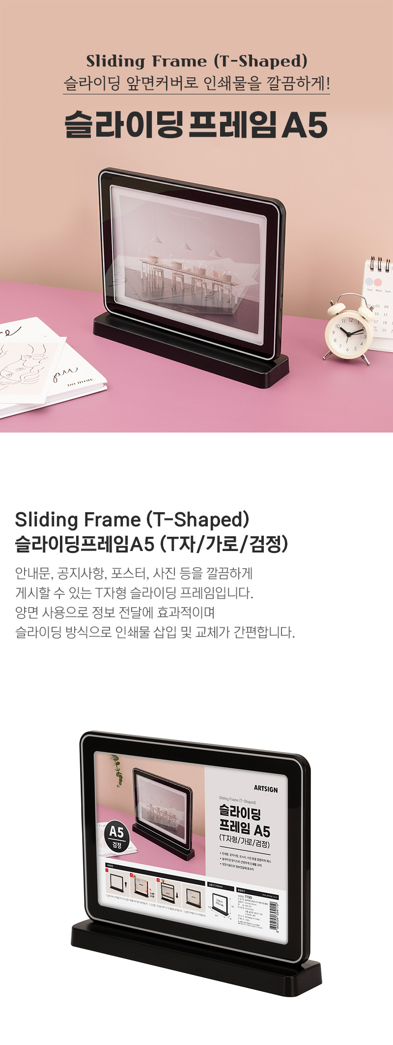 • 슬라이딩프레임A5(T자/가로/검정)